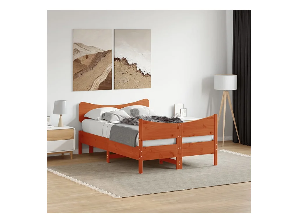 Lit double et tête de lit cire marron 120x200 cm bois de pin FR91746