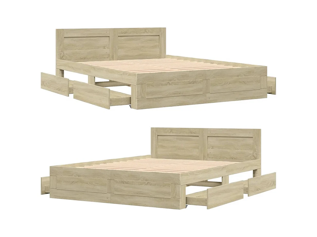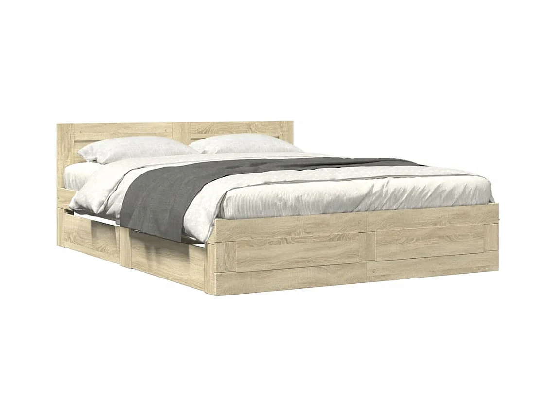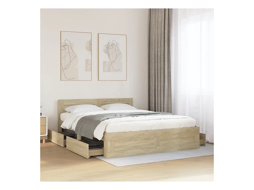 Lit double | Lit adulte | Cadre de lit tête de lit chêne sonoma 160x200 cm