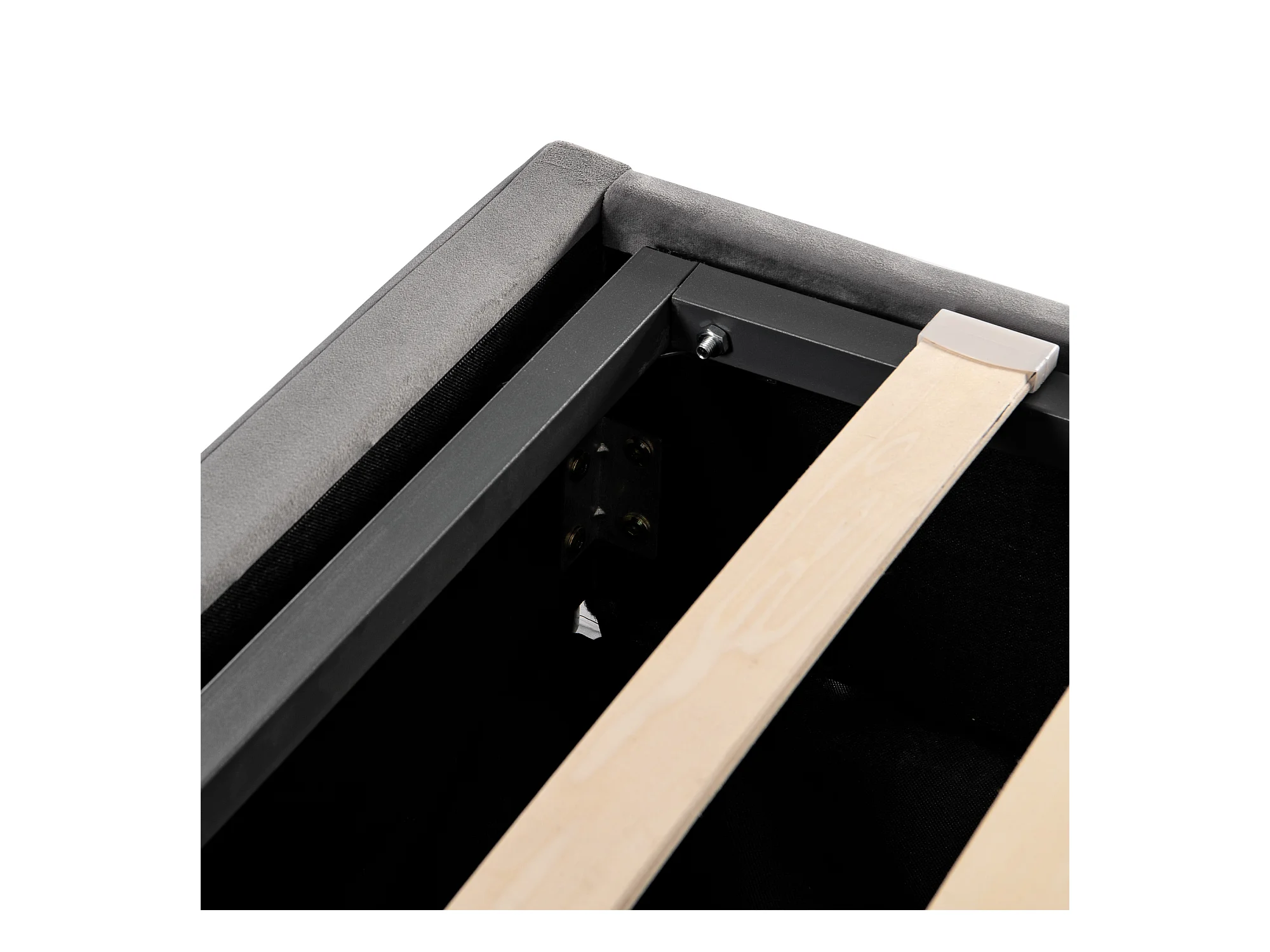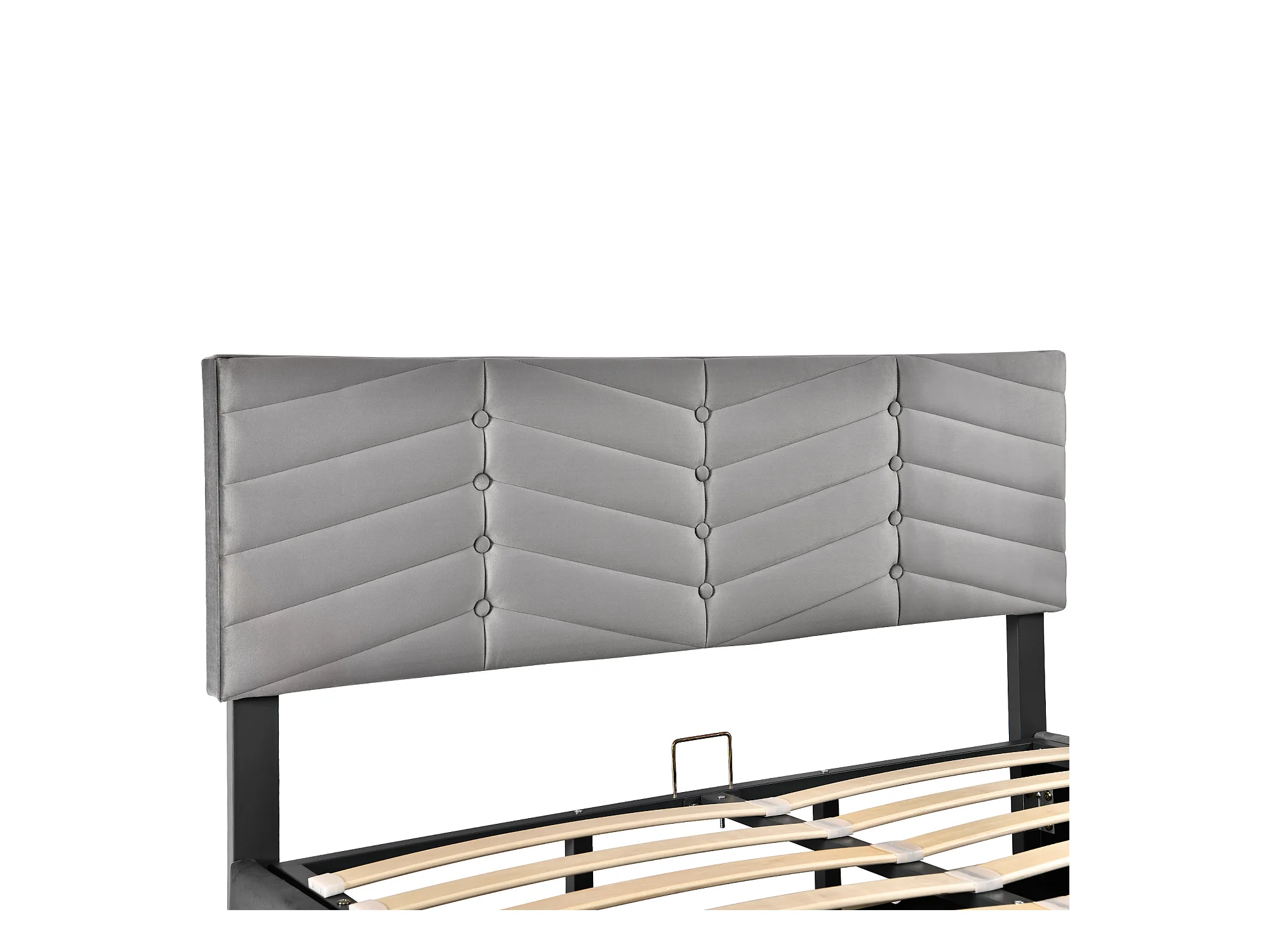 Lit coffre 140x200 cm lit adulte avec tête de lit réglable en hauteur - tissu en velours gris - sans matelas