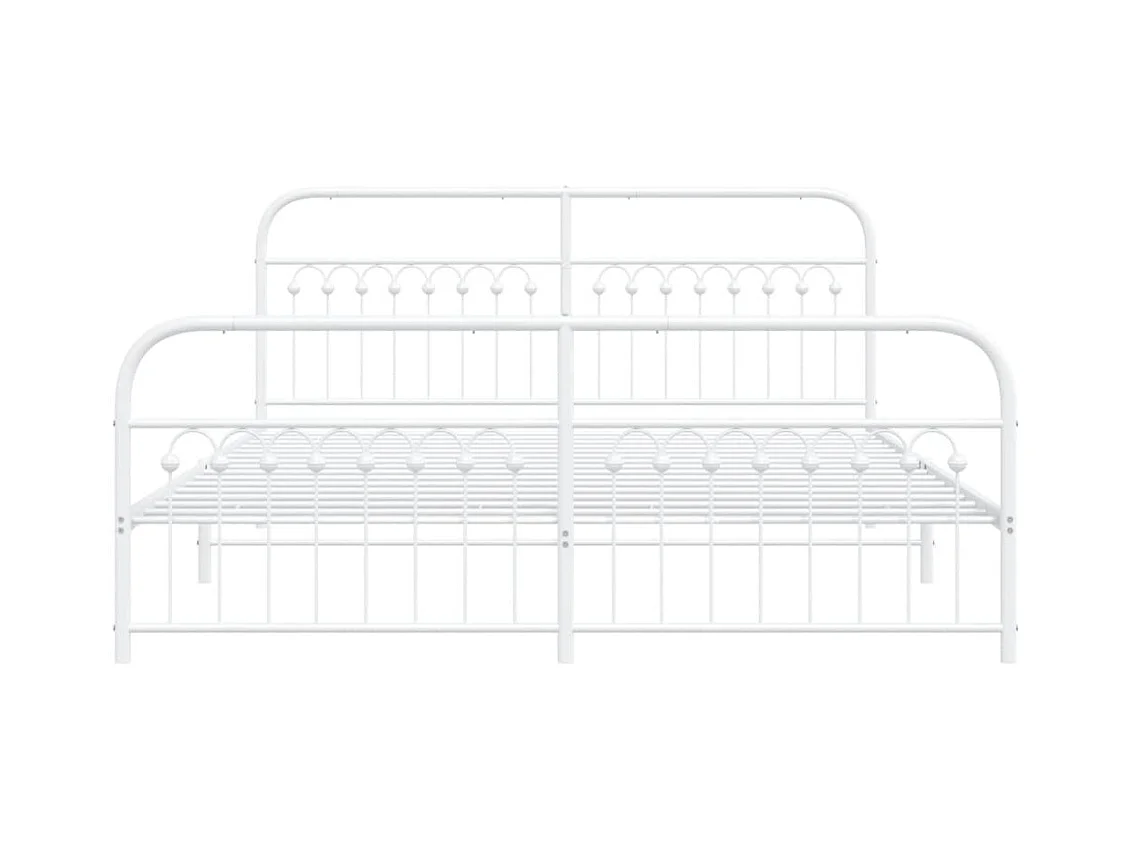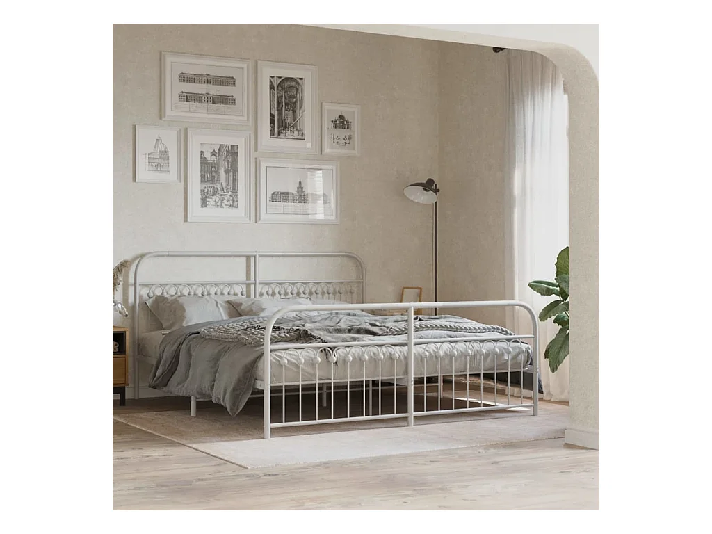 Lit double métal + tête de lit/pied de lit blanc 183x213cm FR74164