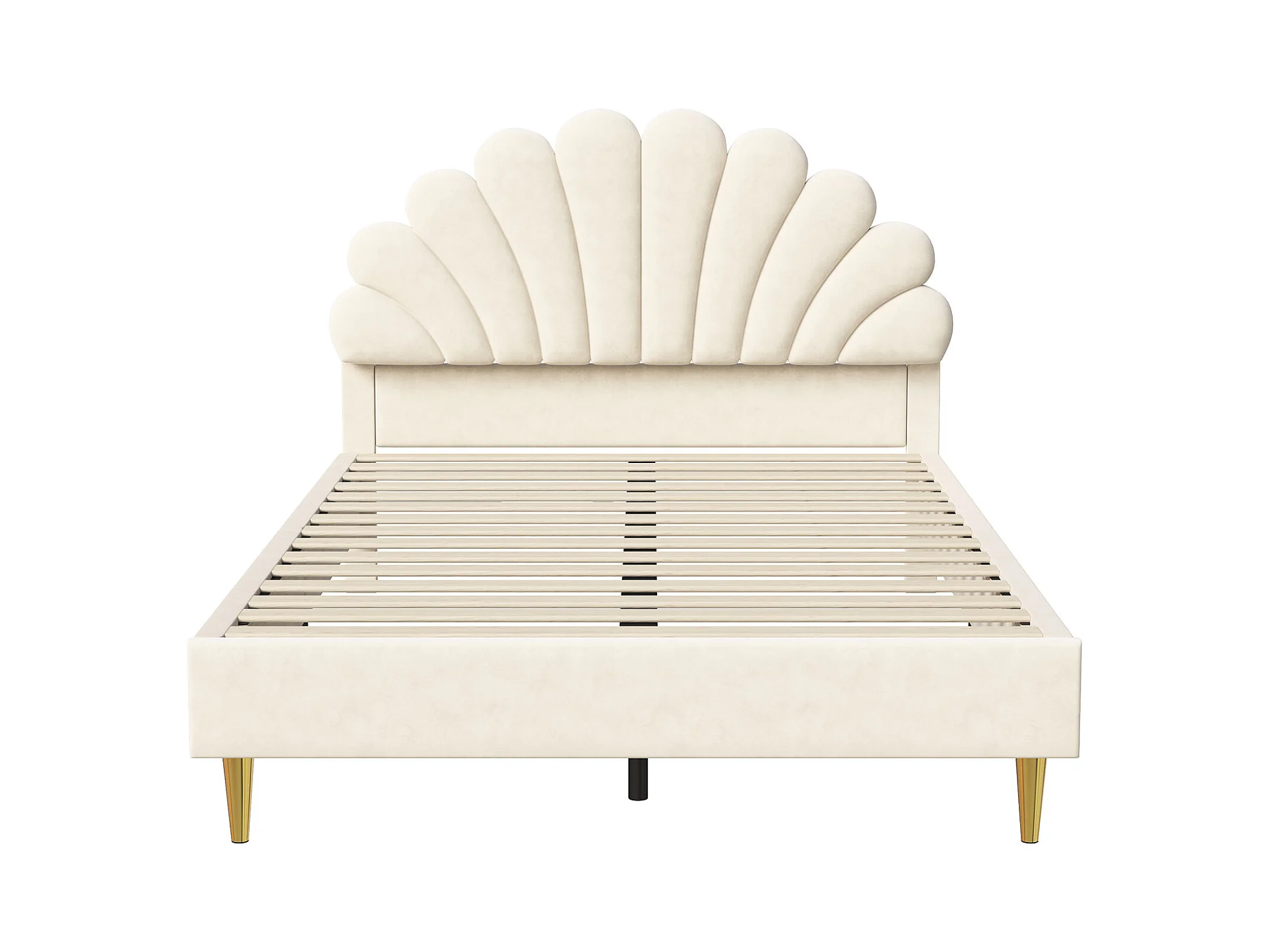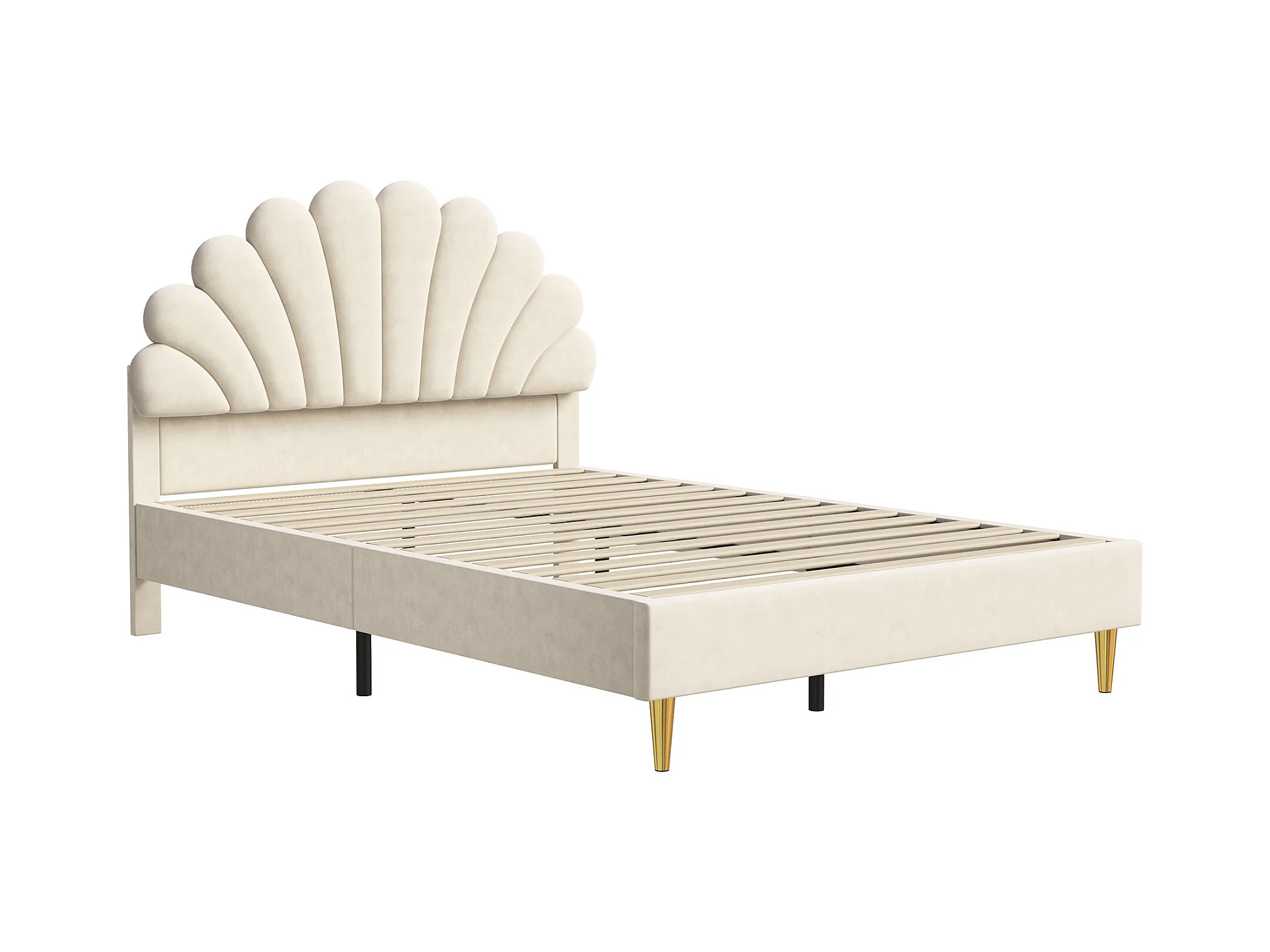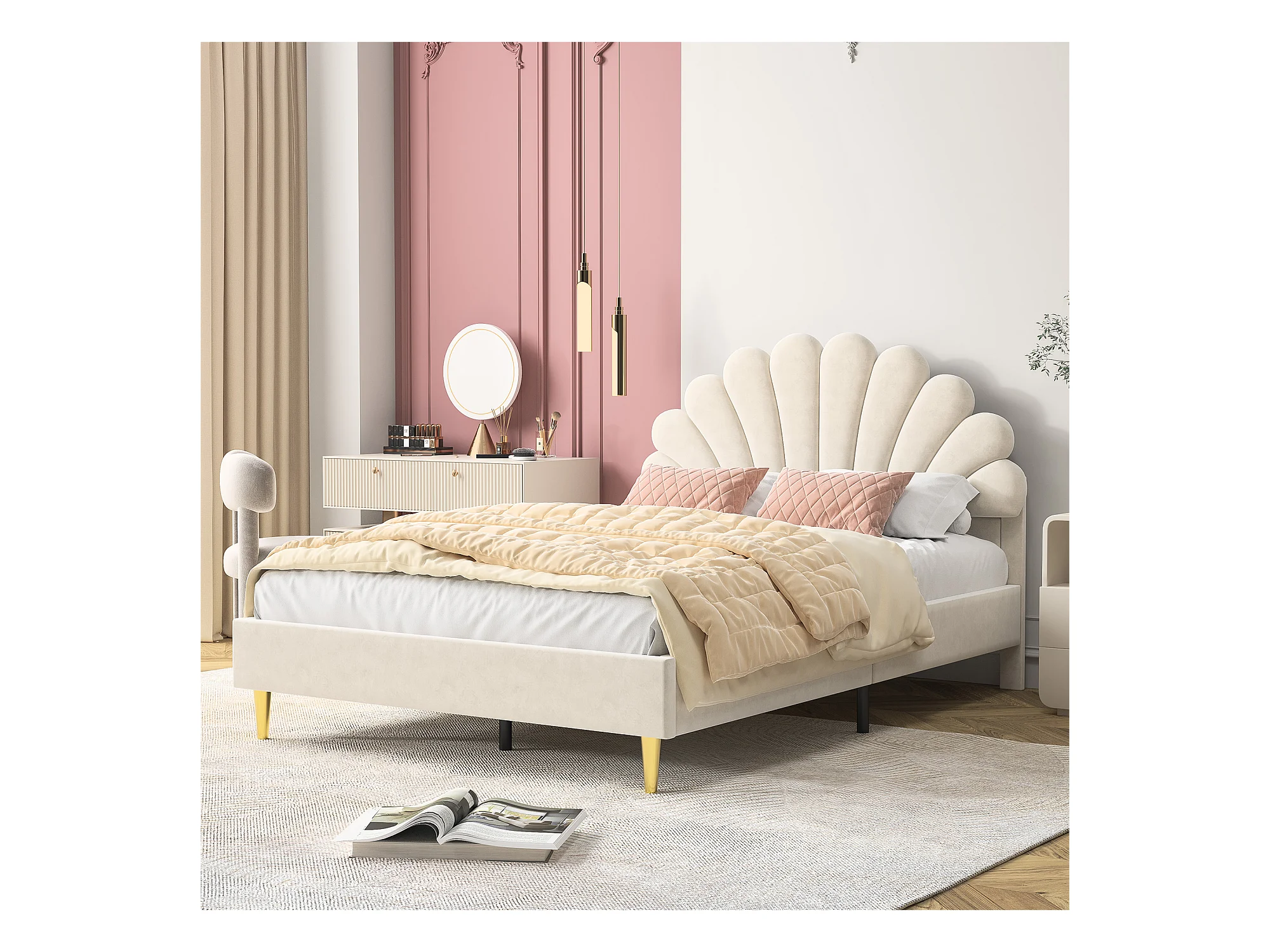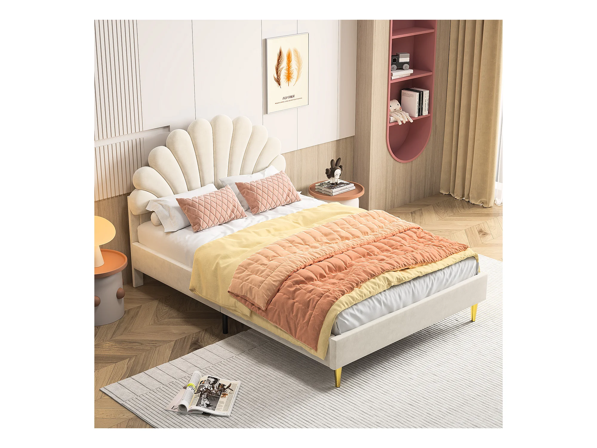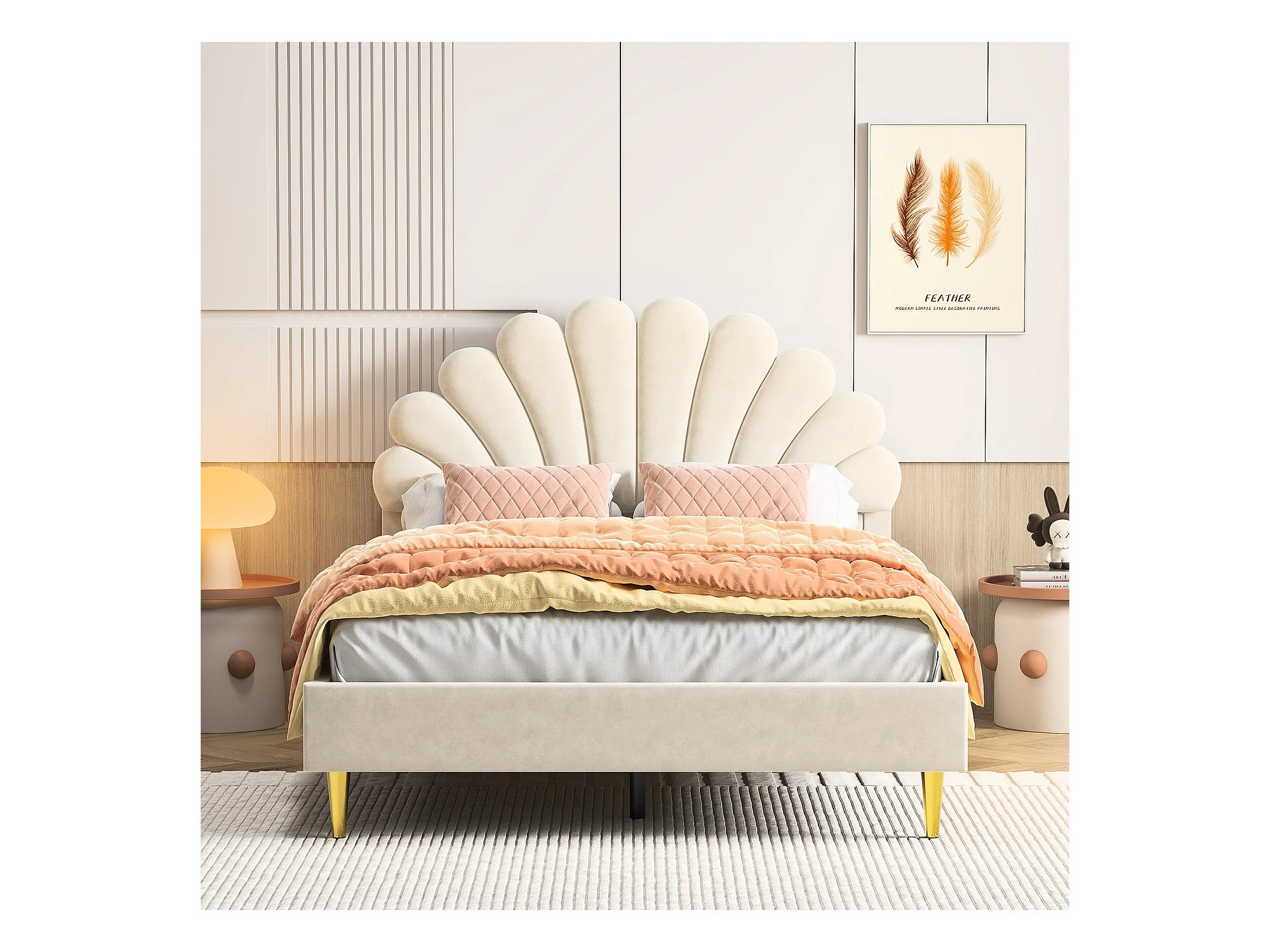 Lit 140*200cm, pétale Lit double , Avec tête de lit moelleuse,beige, velours