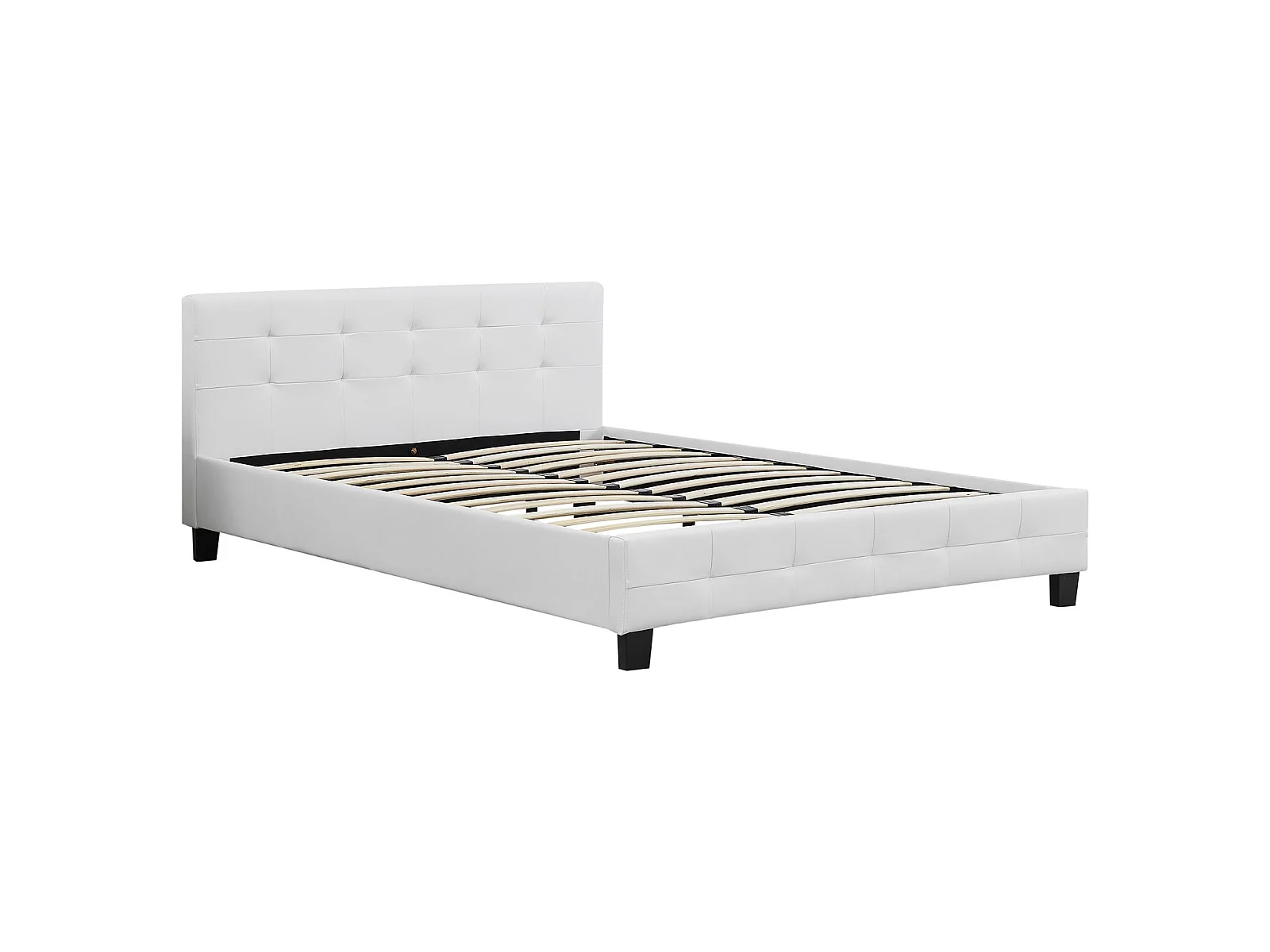 Lit double pour adulte MATHIEU avec sommier 140x190 cm 2 places / 2 personnes, tête et pied de lit capitonnés en synthétique blanc