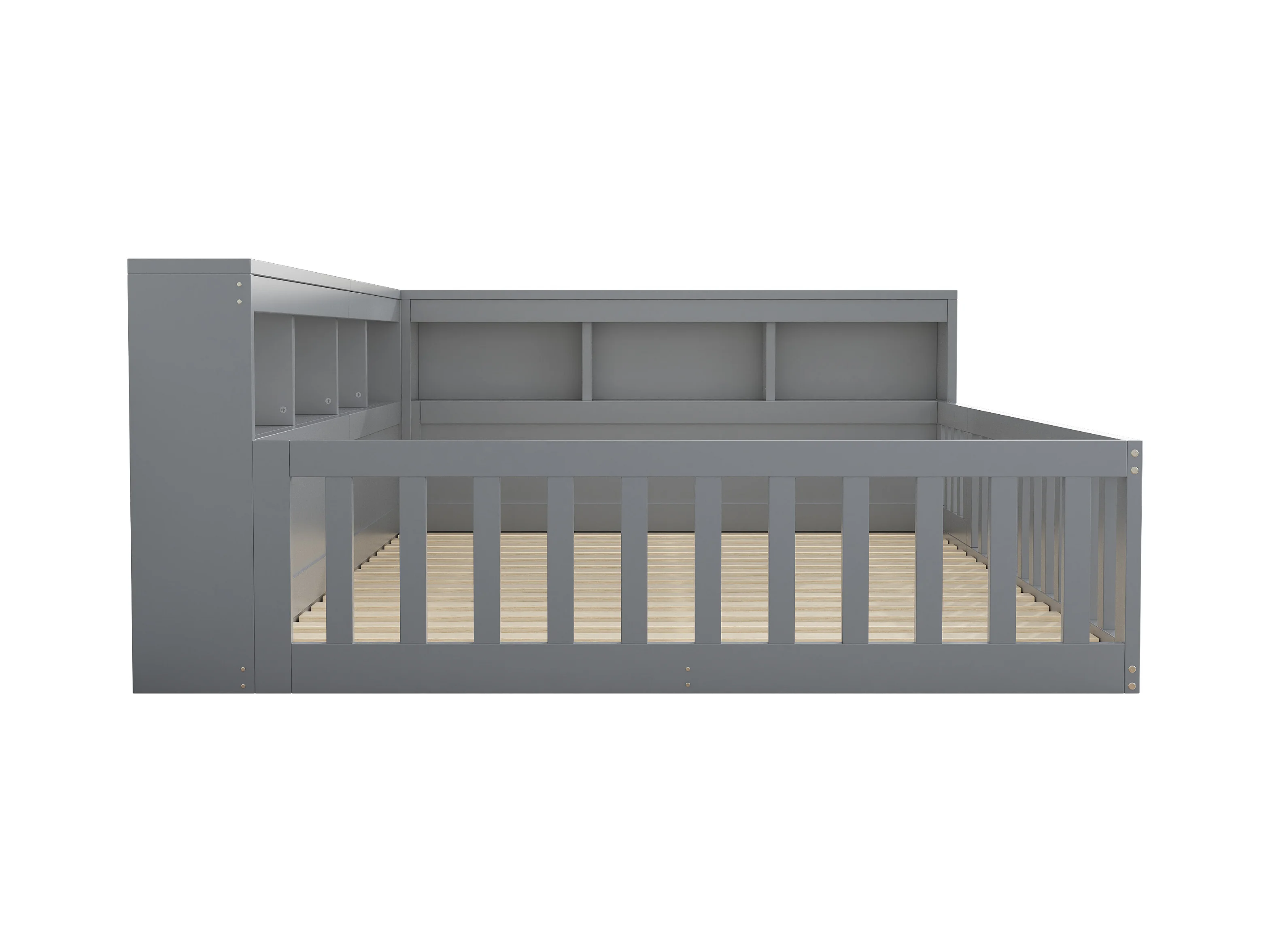 Lit double pour enfant - 140 x 200 cm - chevet avec rangements + prise + USB - avec sommier à lattes - aggloméré - gris