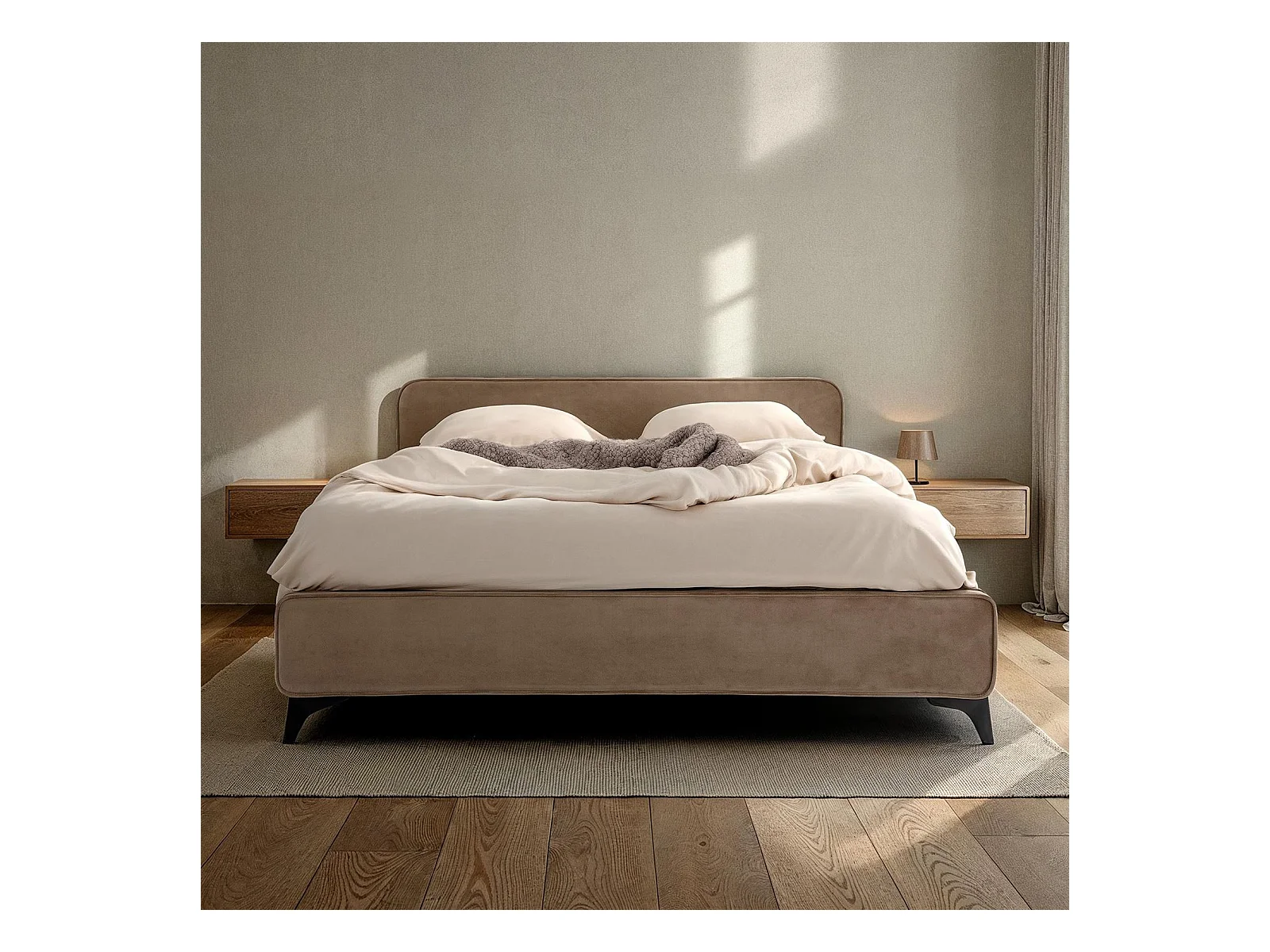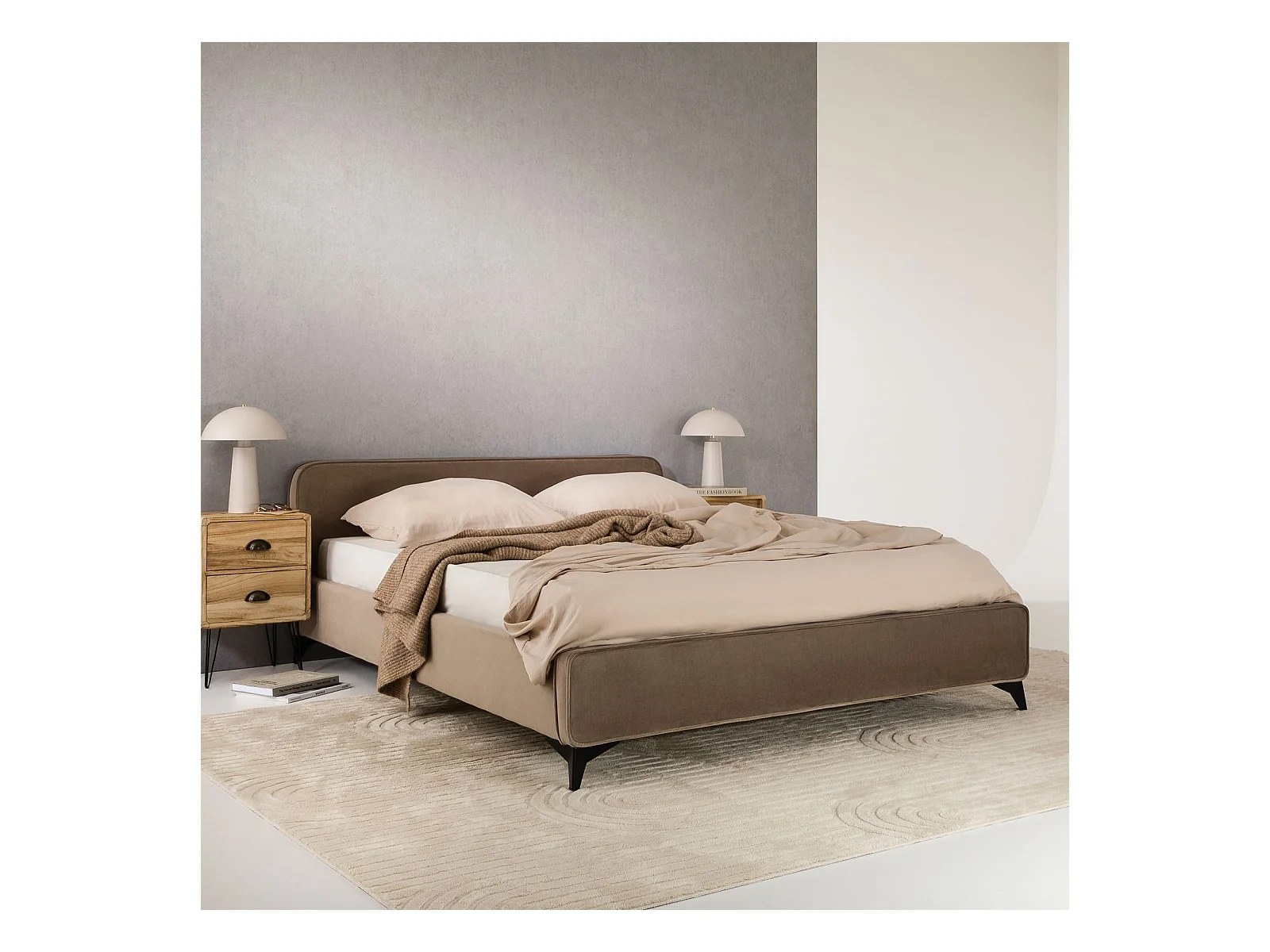 Lit double RAVELLO 140x190 cm, Revêtement en tissu, Lit style moderne pour 2 personnes, Cadre de lit avec sommier inclus, Grège