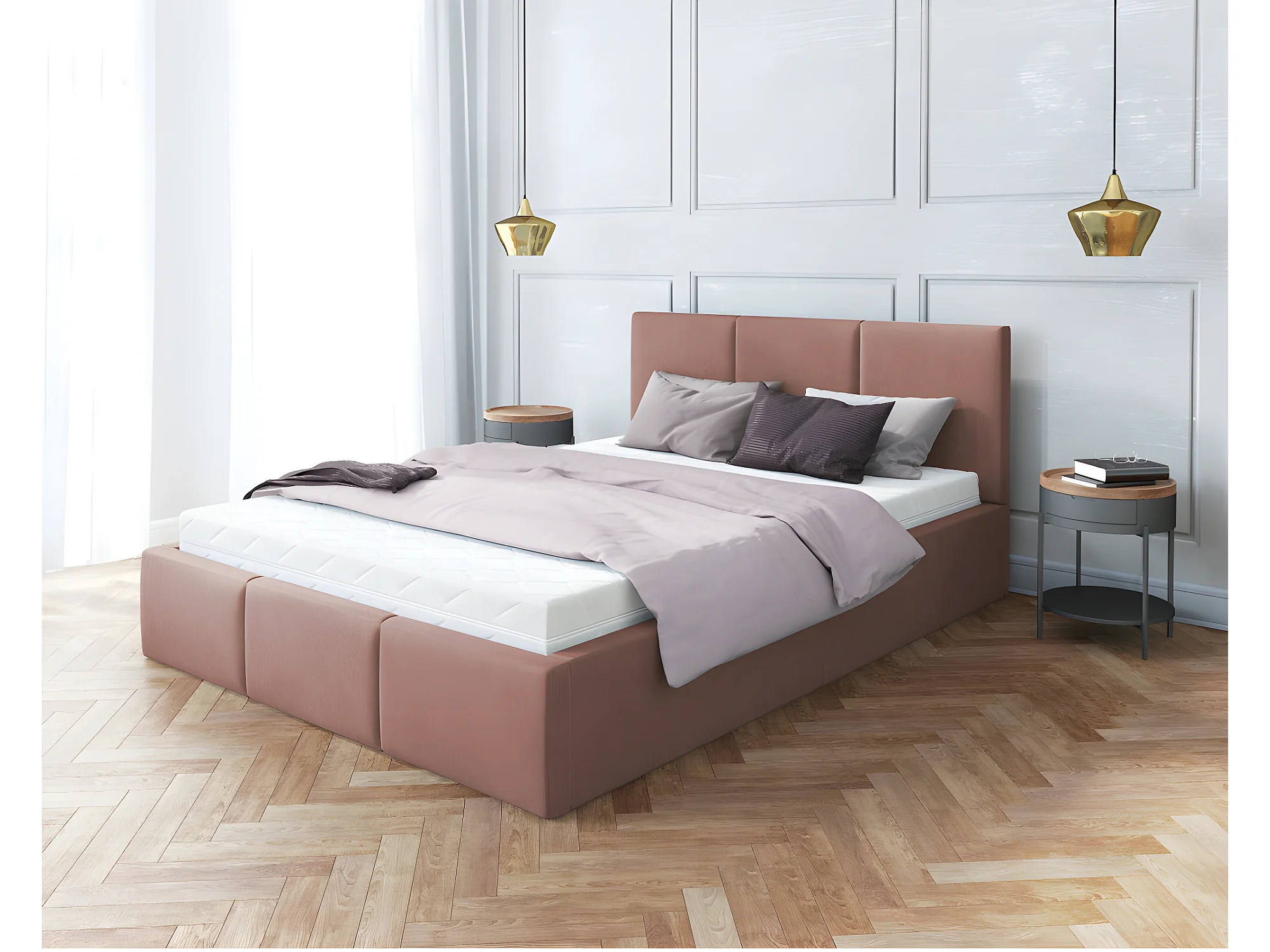 Lit Double Tesia 160x200 + coffre - Sommier inclus Rose misty