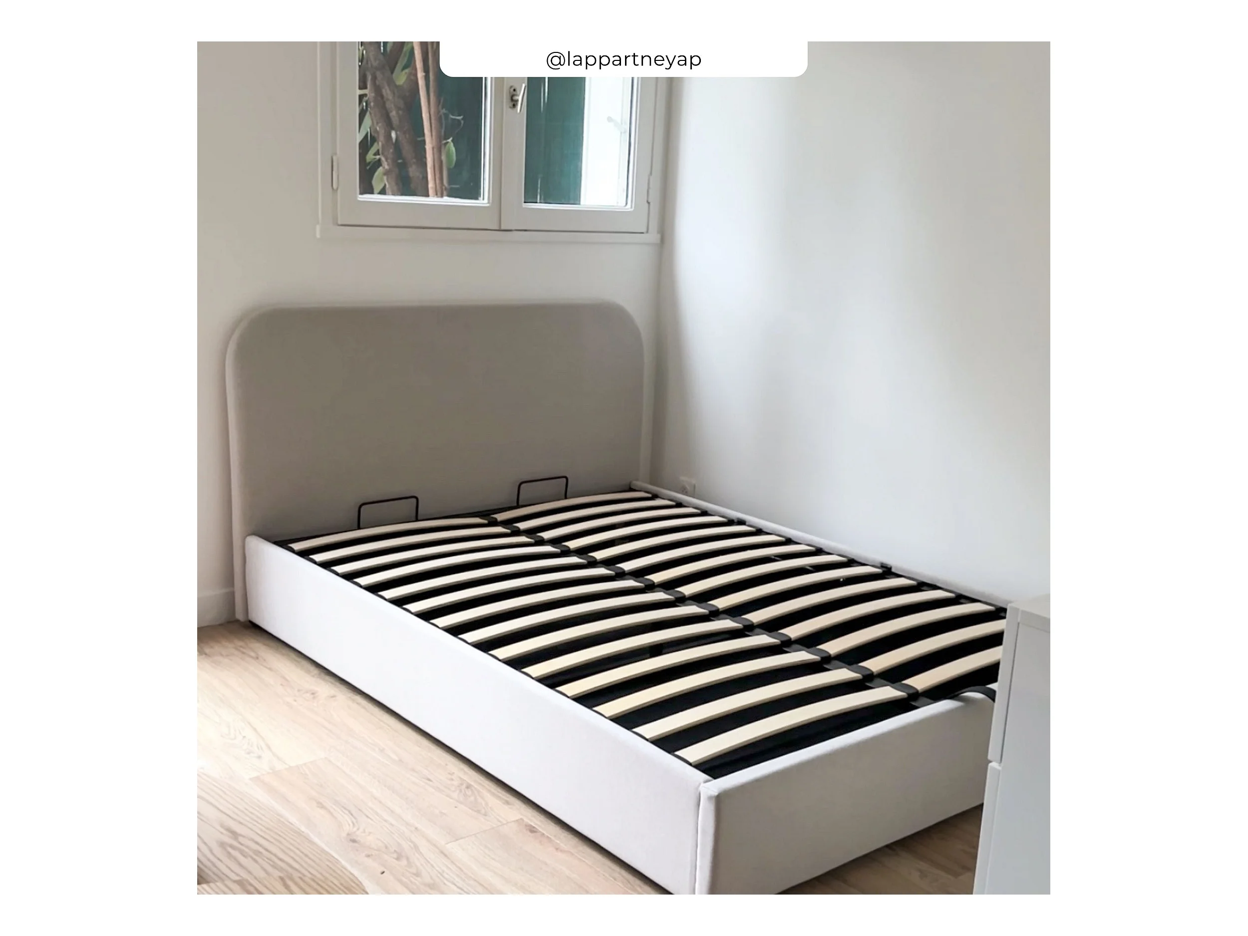 Lit double avec coffre 140x190 cm en tissu gris/beige - Tilly