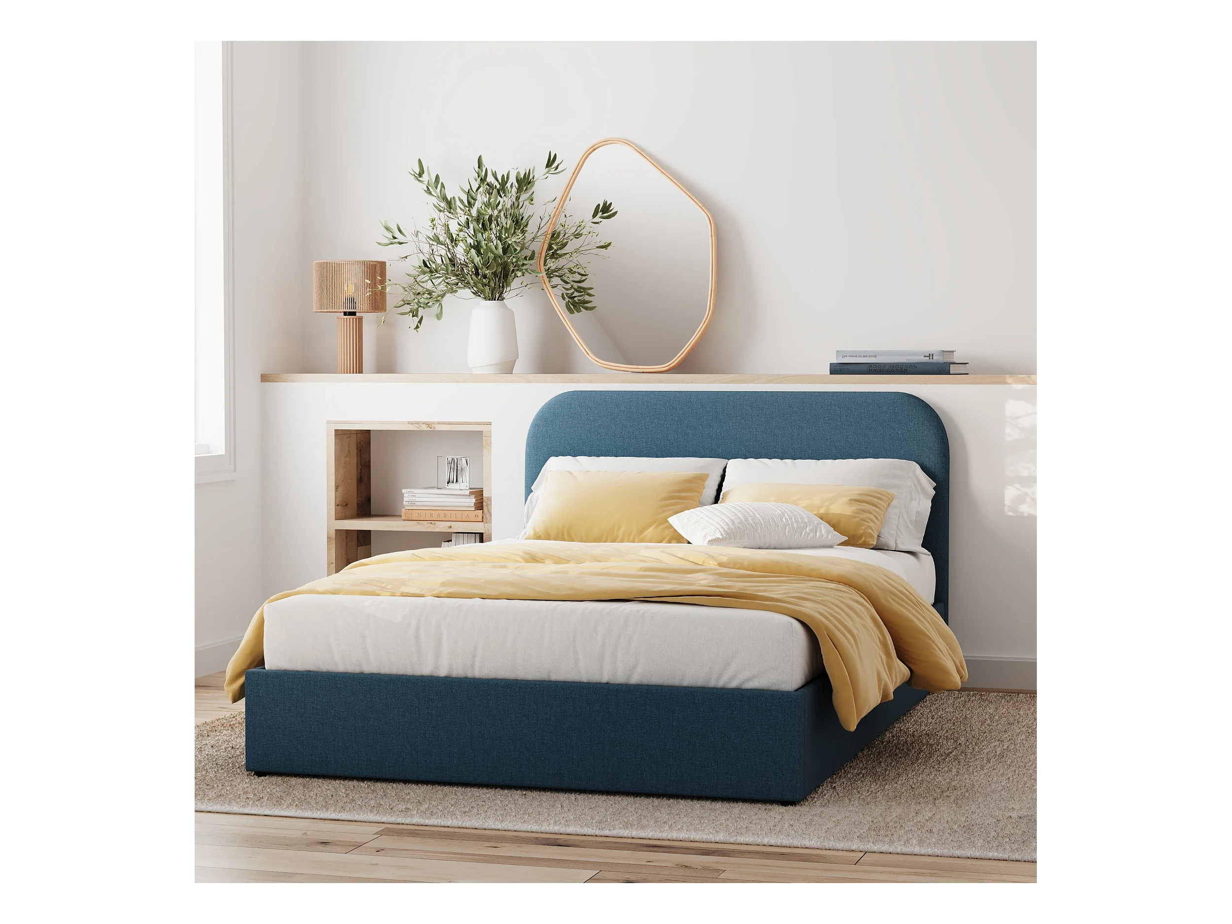 Lit double avec coffre 140x190 cm en tissu bleu - Tilly