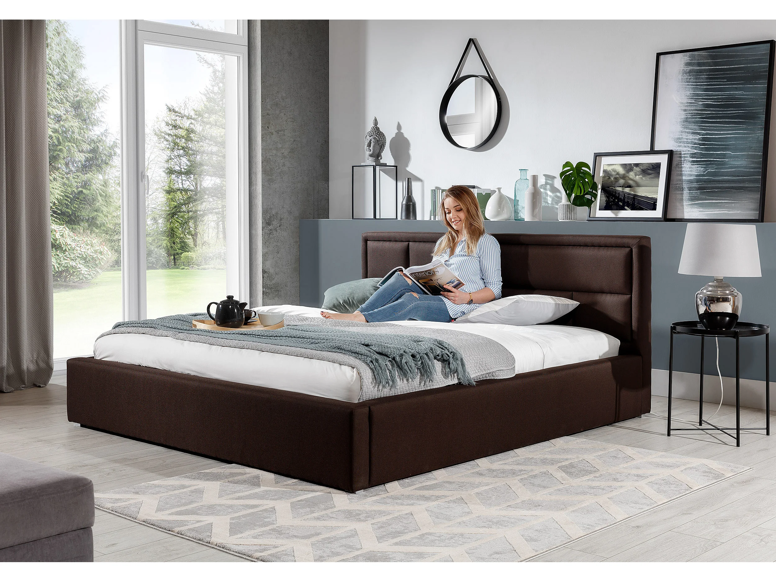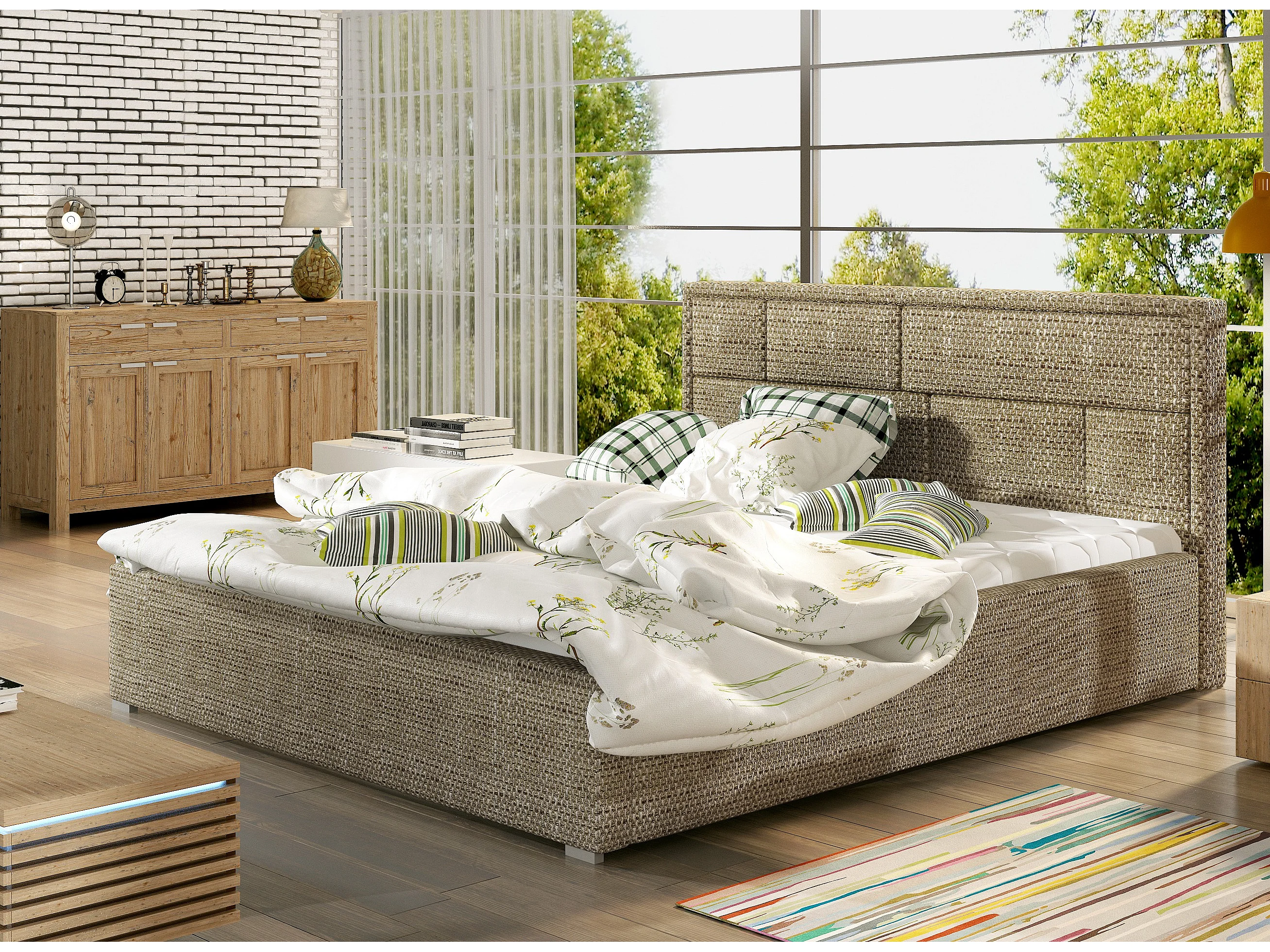 Lit double tissu beige chiné tête de lit capitonnée Lenzo - 4 tailles-200x200