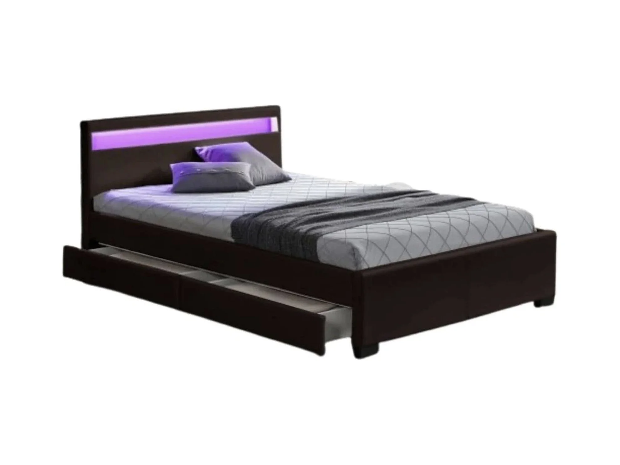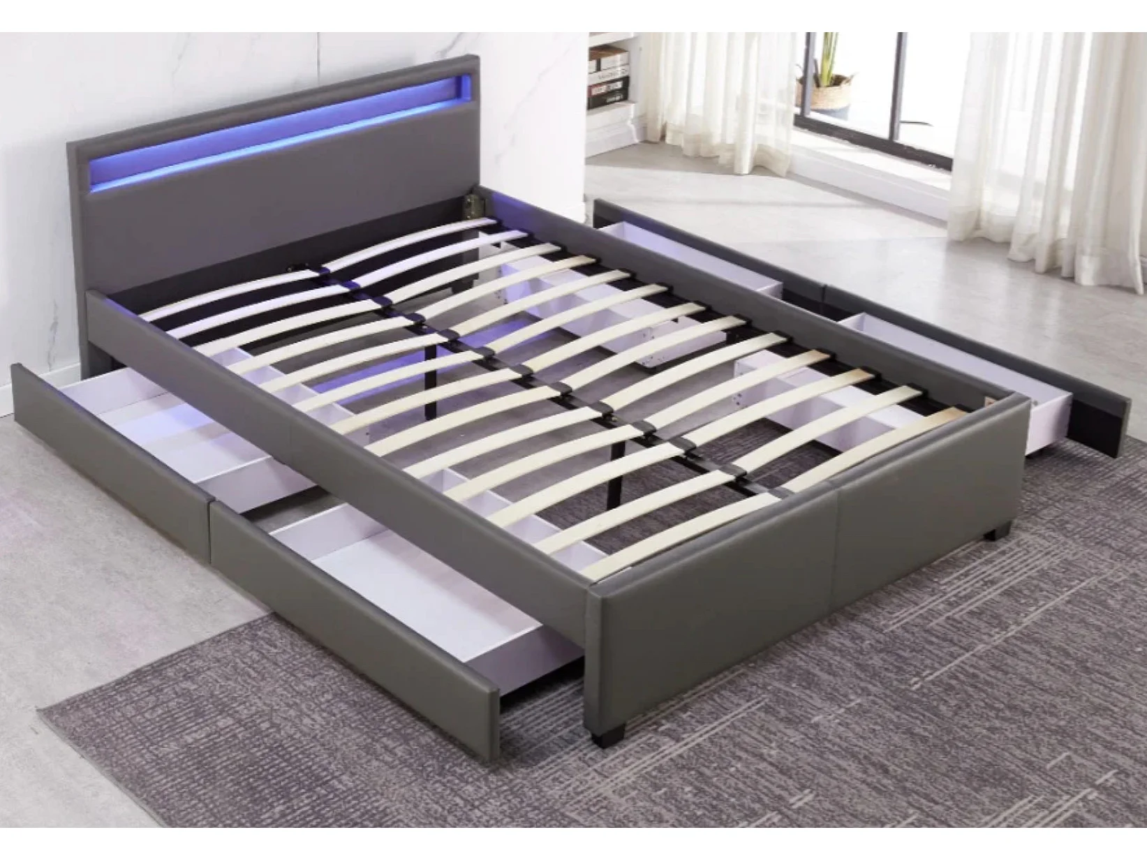 Lit à led avec 4 tiroirs simili cuir Denvers-Couleur Gris-160x200