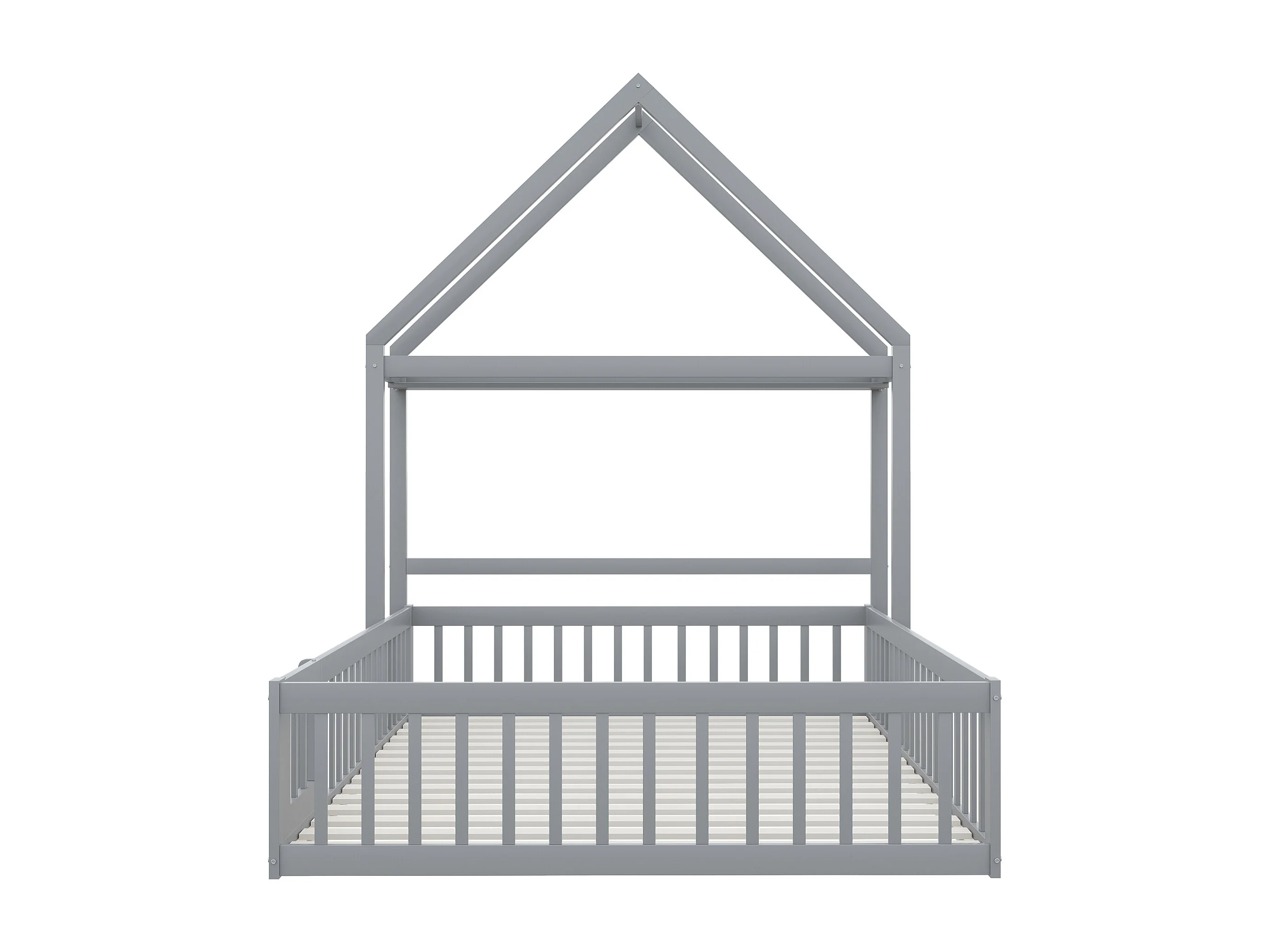 Lit enfant 140 x 200 cm - Cadre de lit avec rangement et porte de sécurité - bois gris - sans matelas
