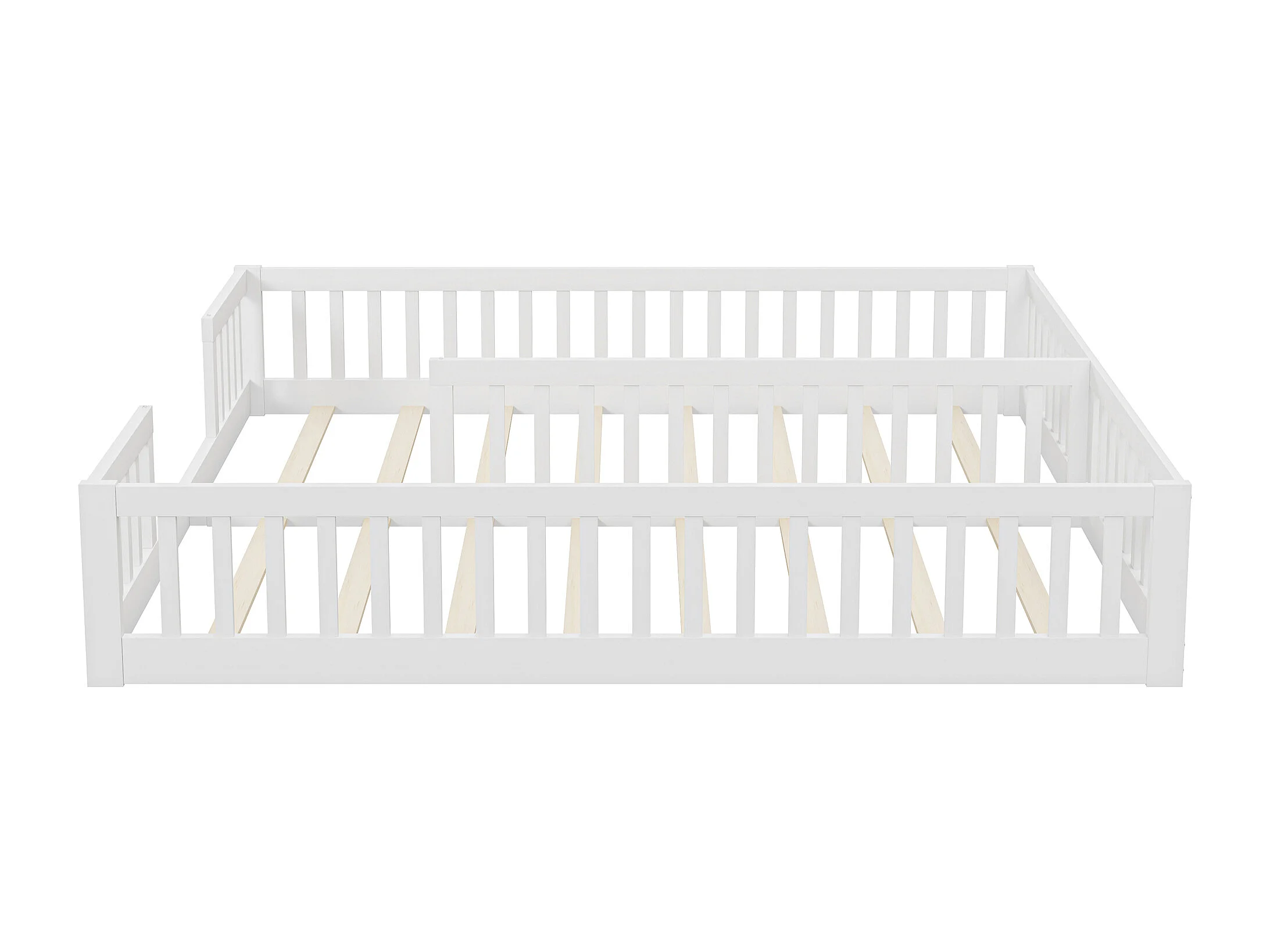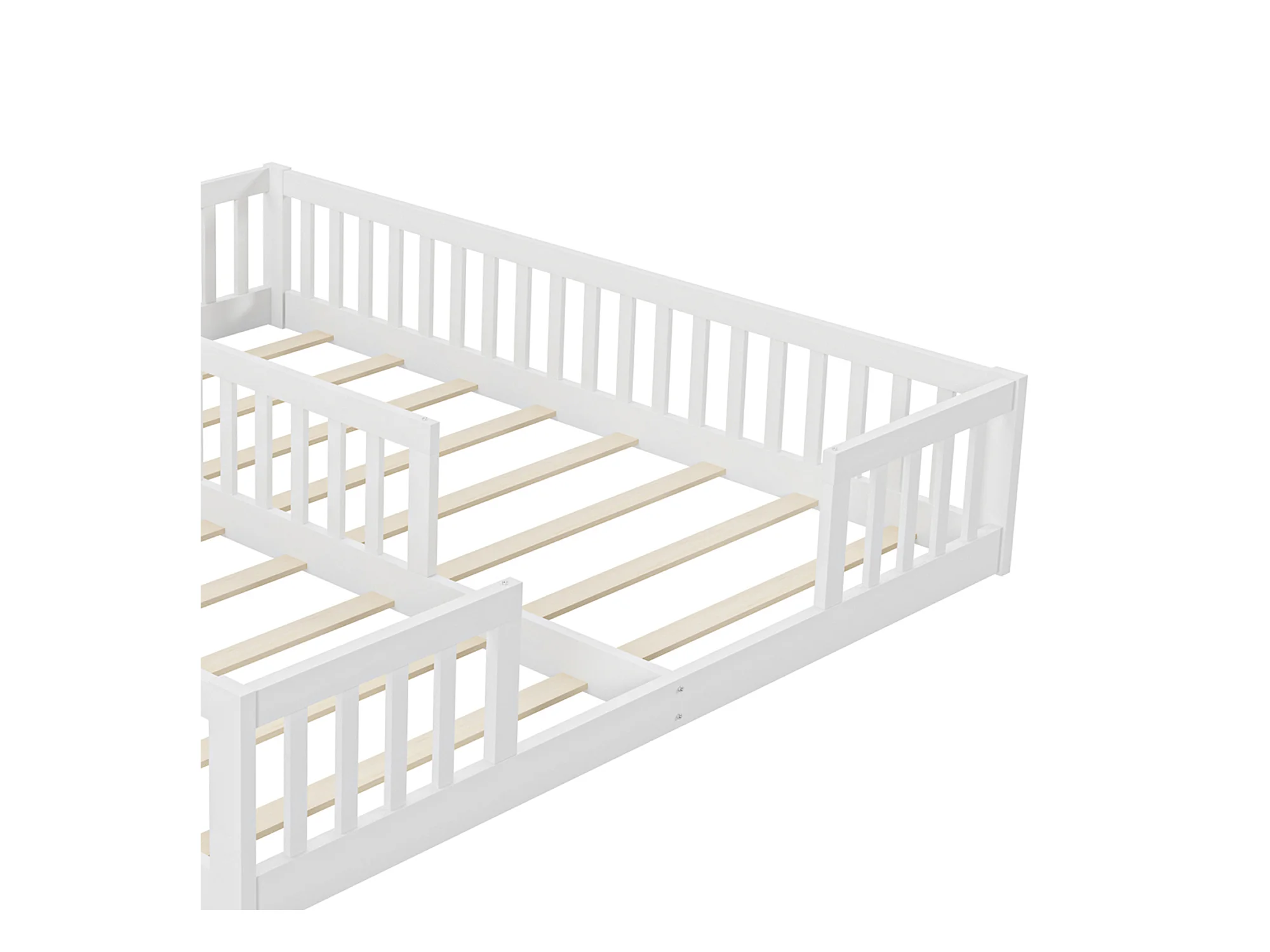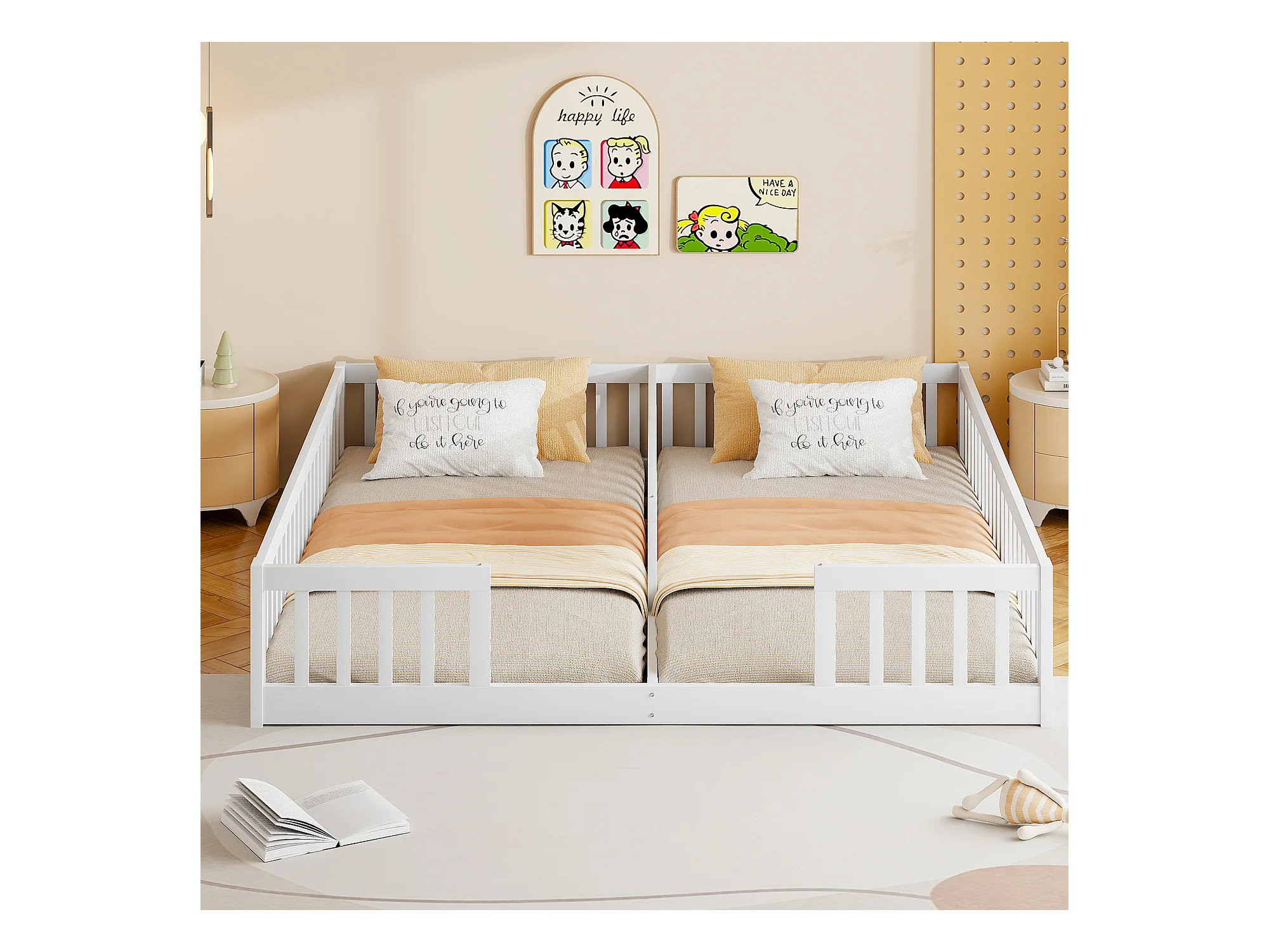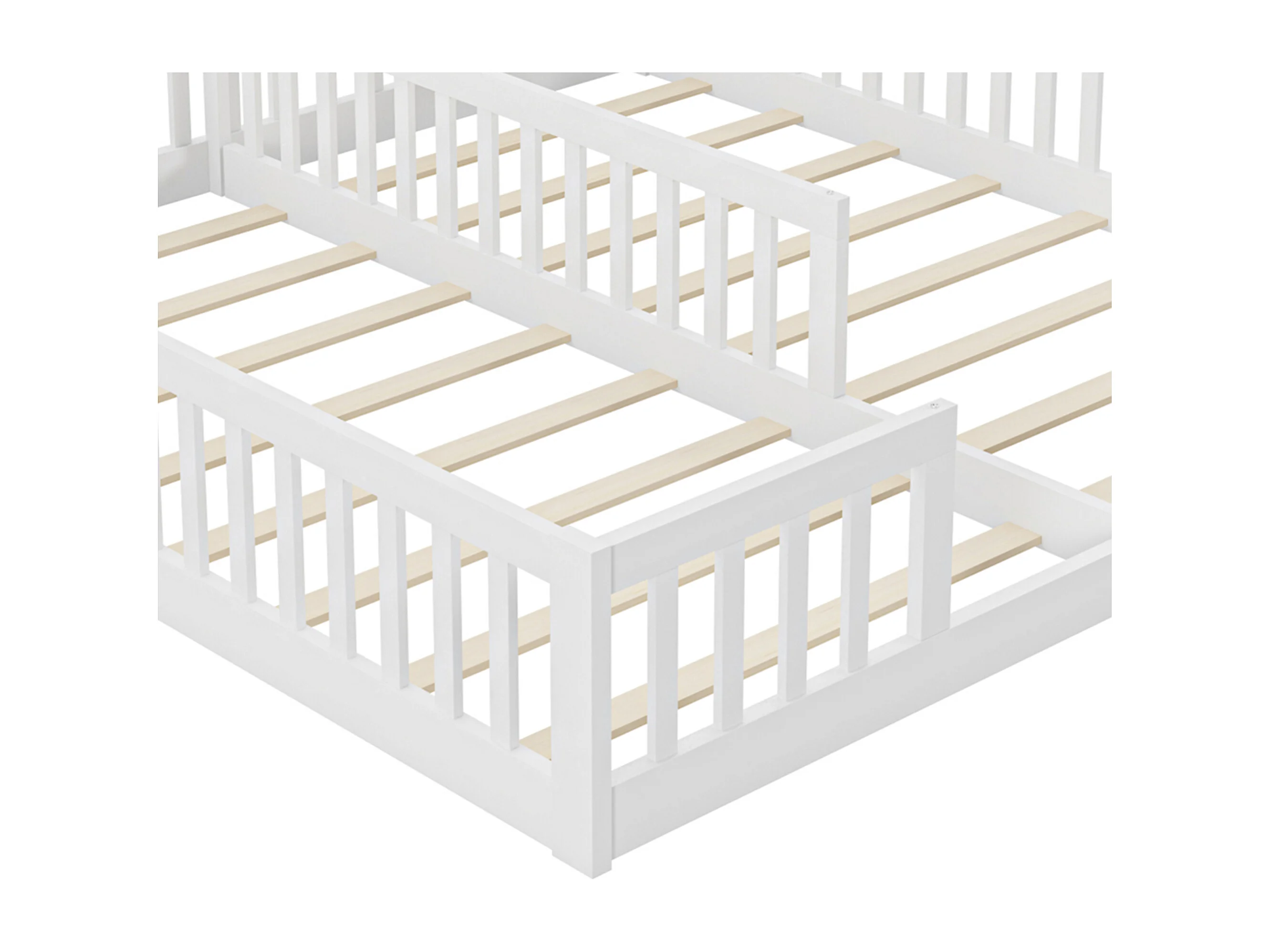 Lit enfant 2x90x200cm en bois massif - avec barrières - avec sommier à lattes - Blanc
