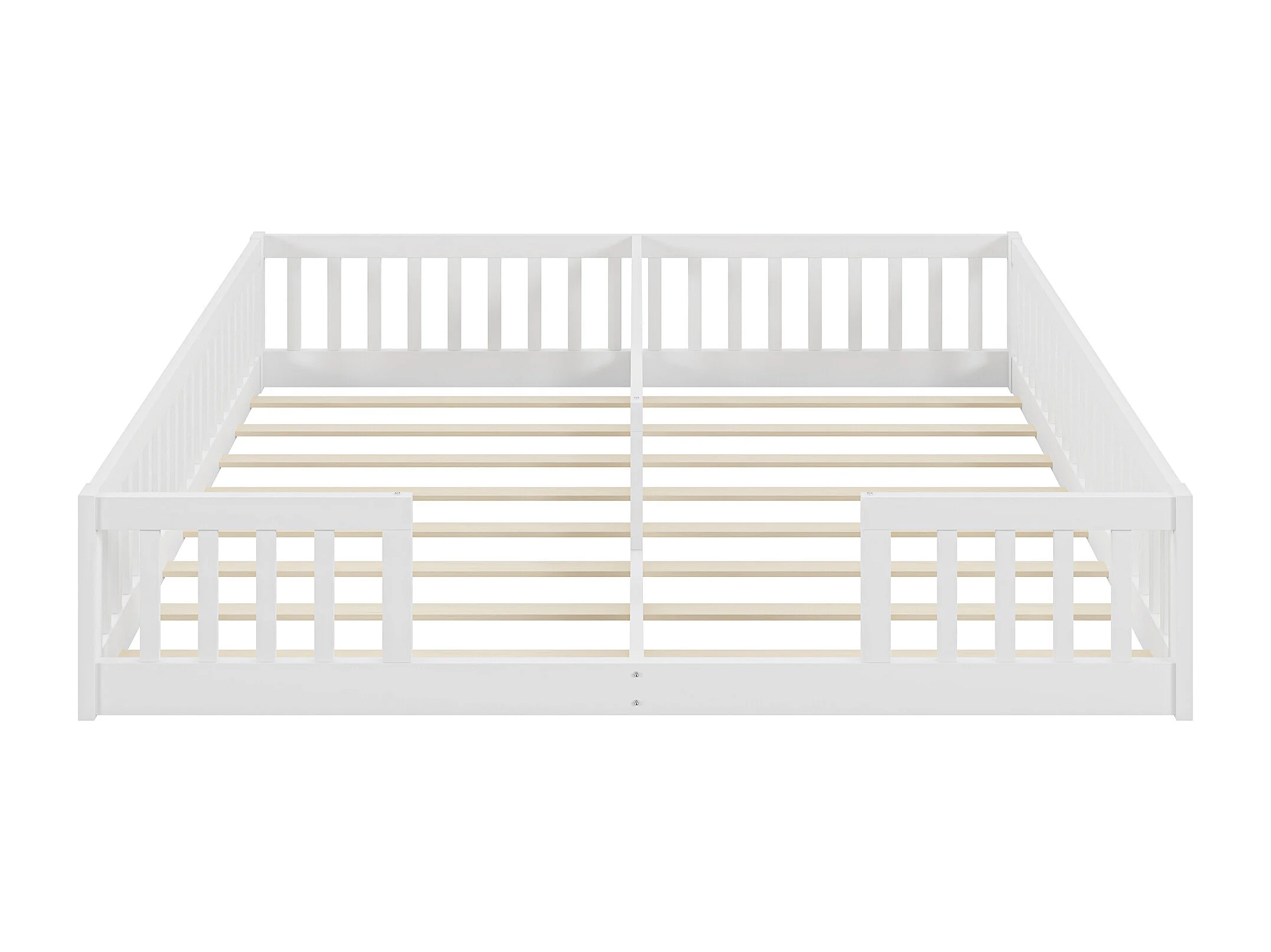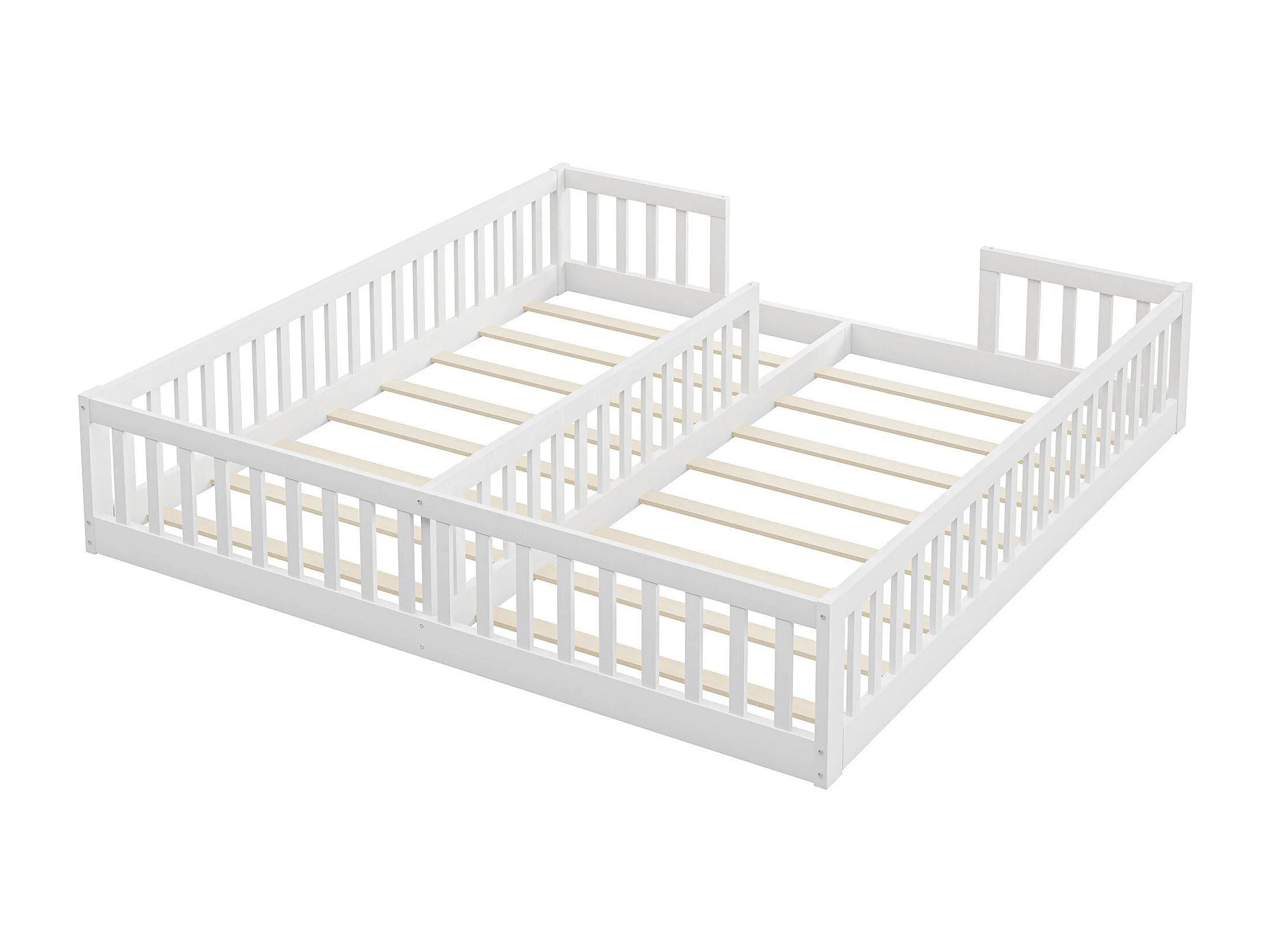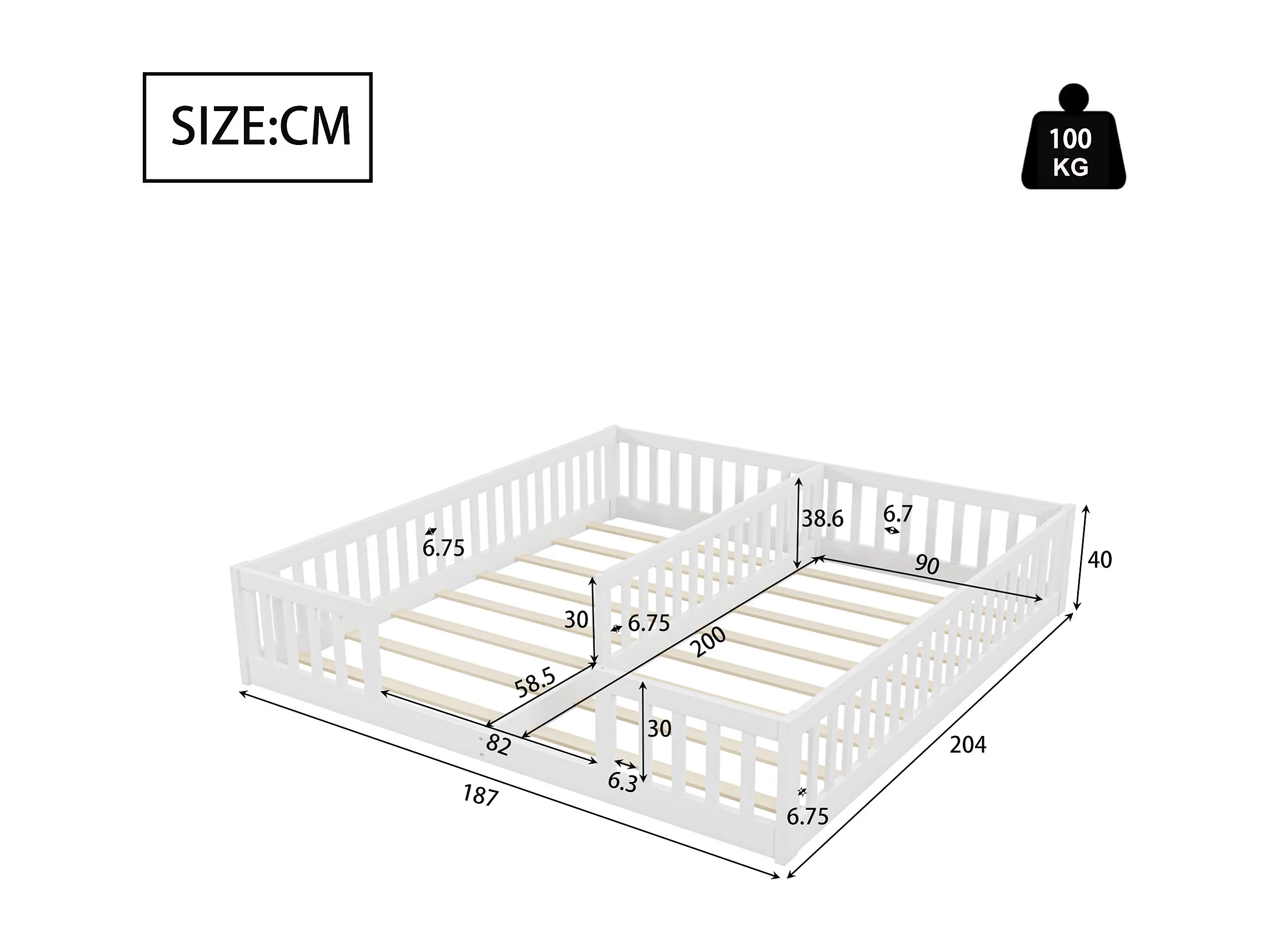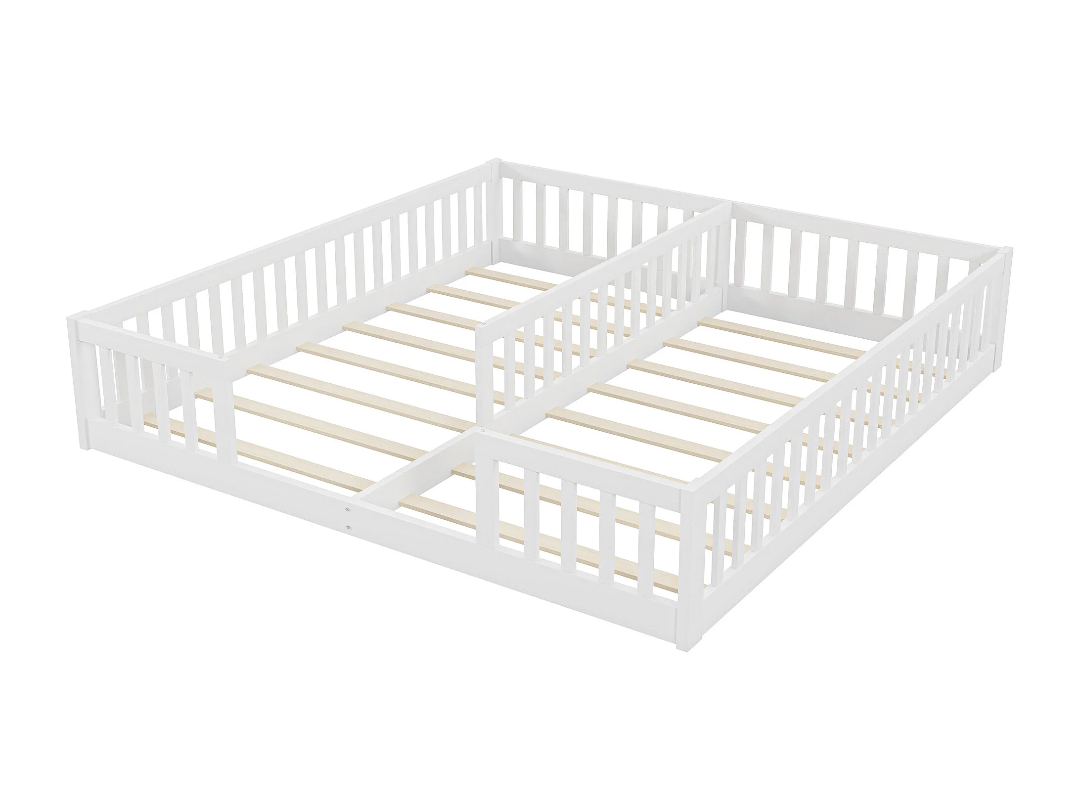 Lit enfant 2x90x200cm en bois massif - avec barrières - avec sommier à lattes - Blanc