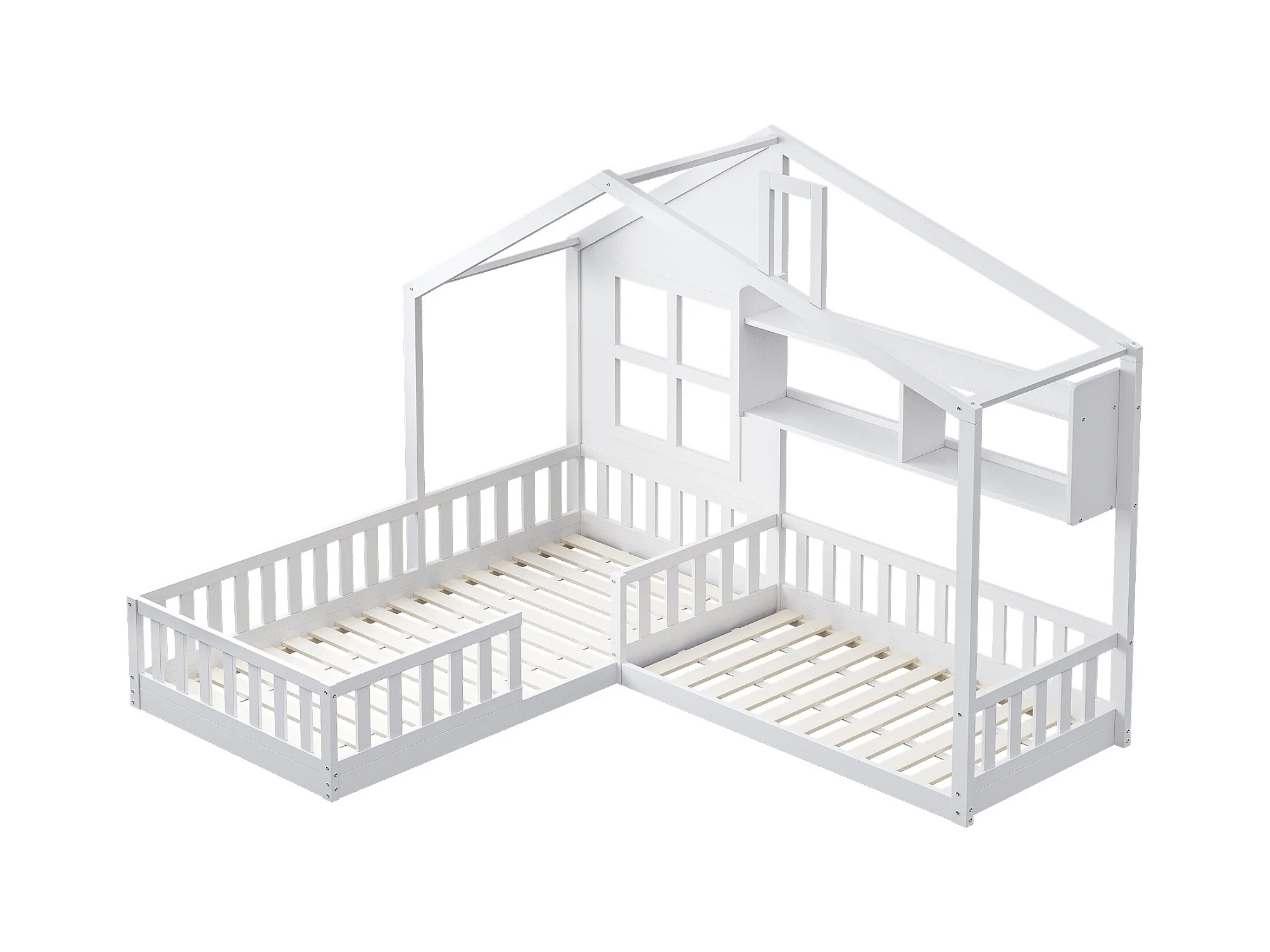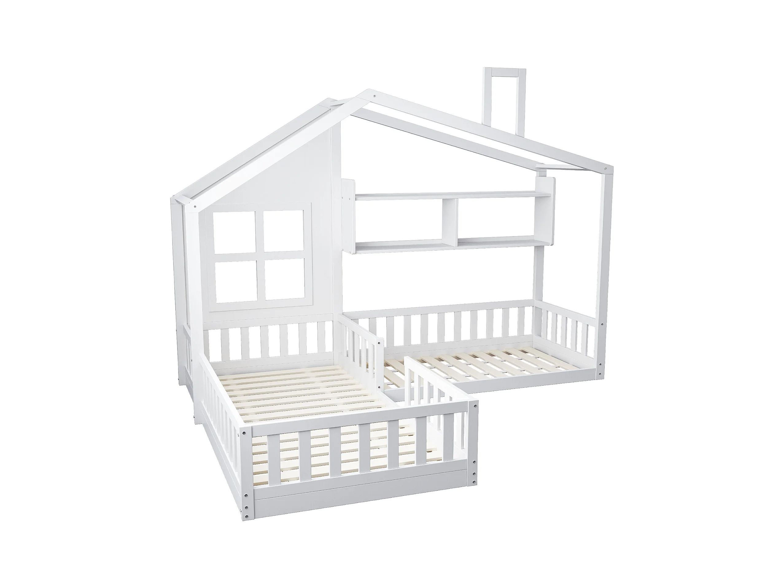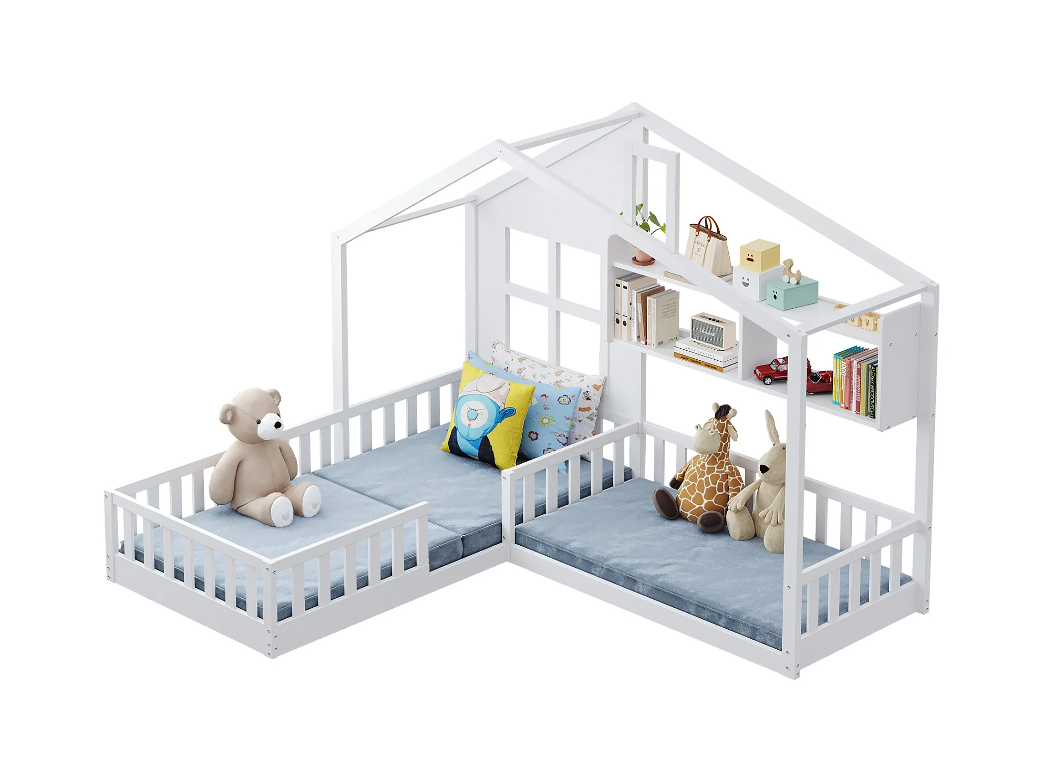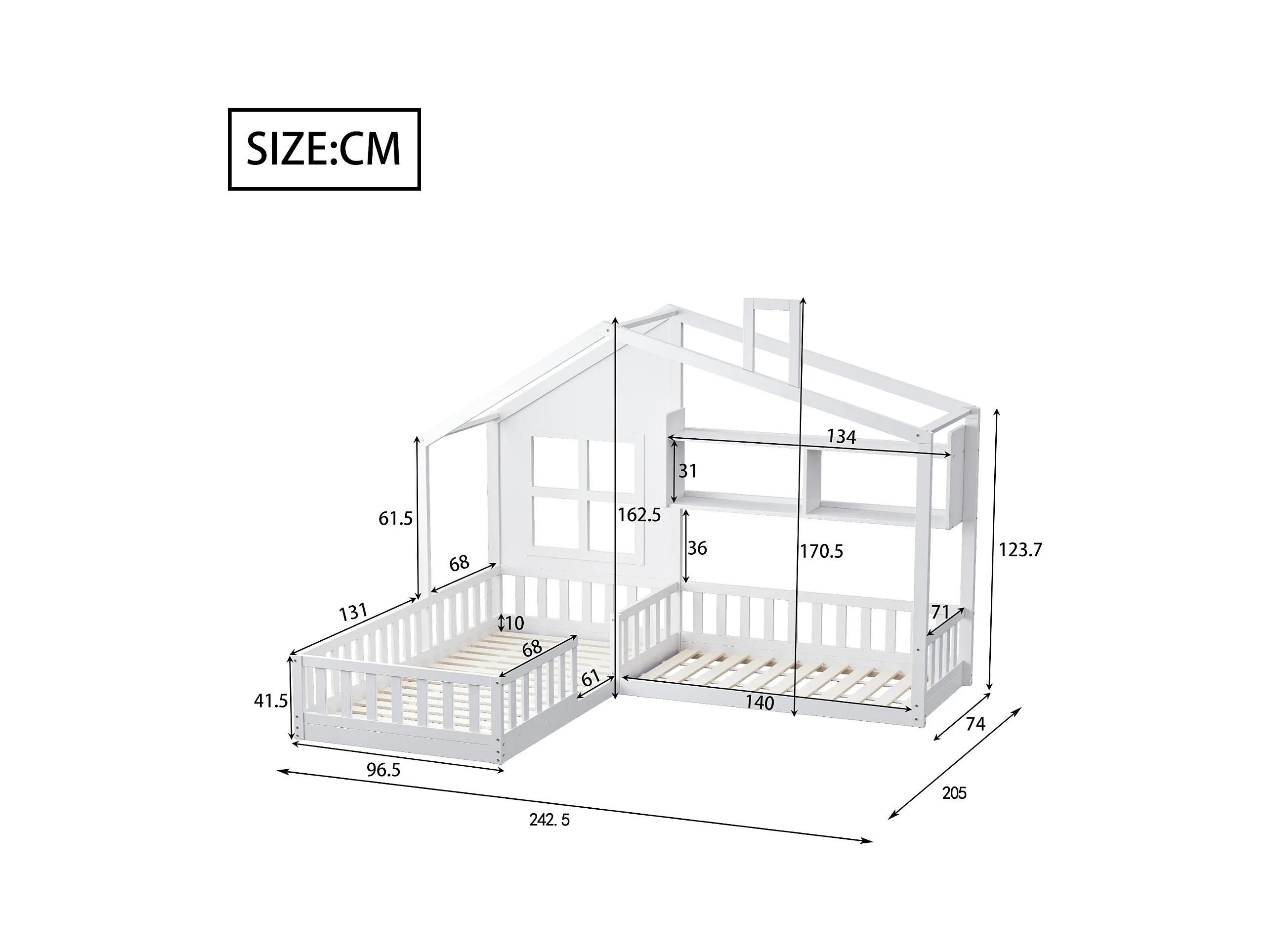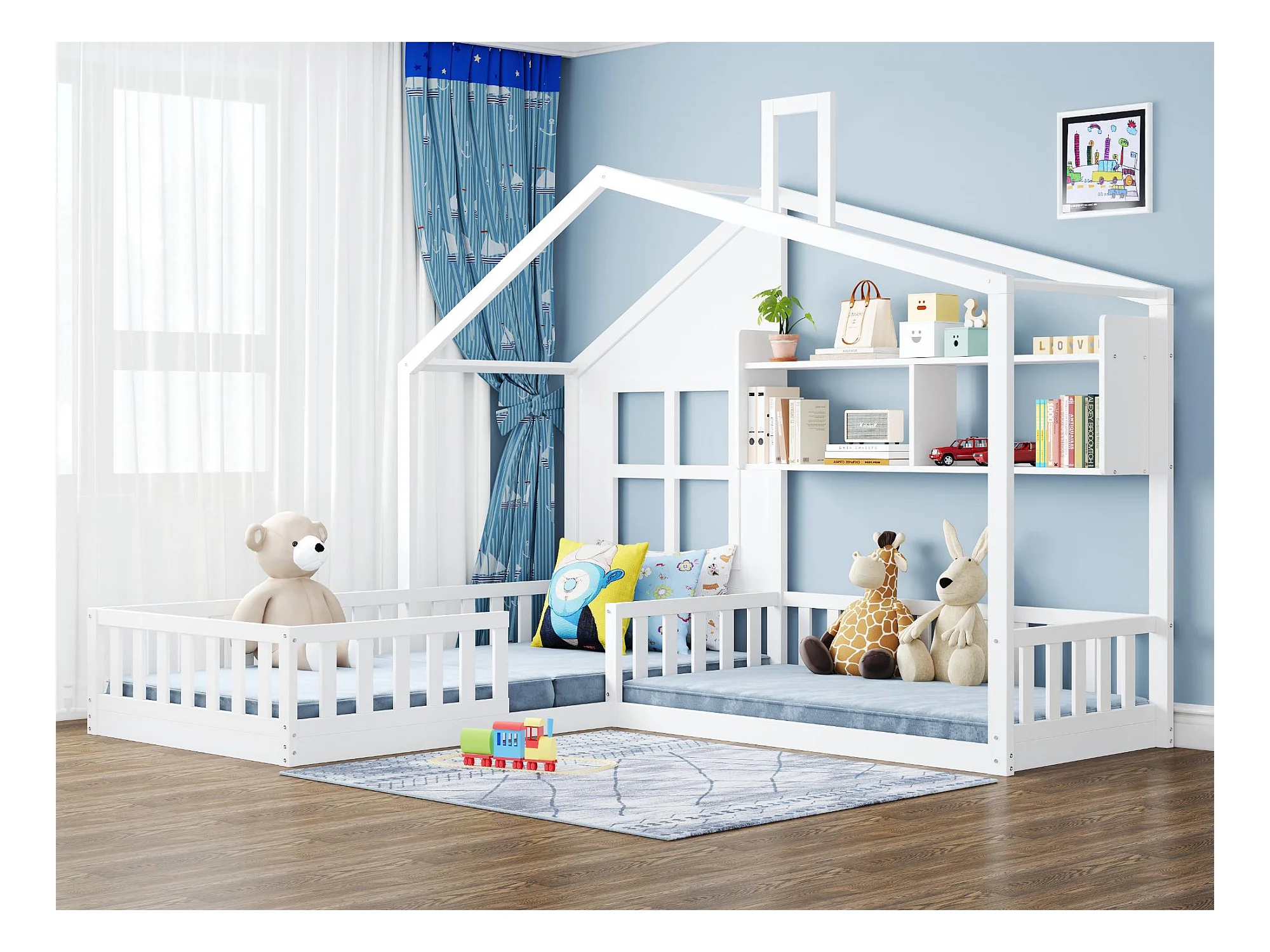 Lit enfant 70x140 cm/90x200 cm en bois - avec étagères et sommier à lattes - Blanc