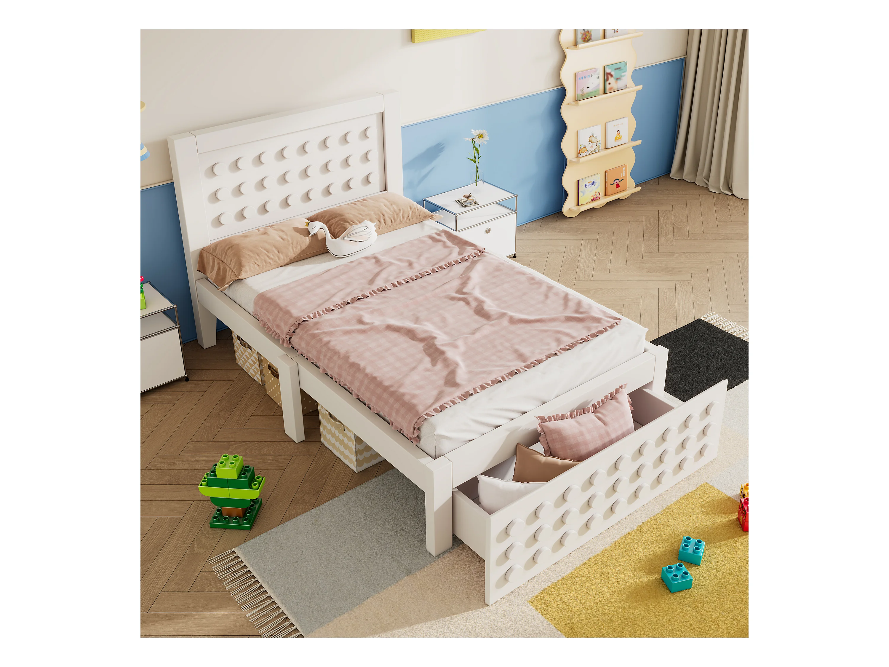 Lit enfant 90x200 cm - avec tiroirs et rangement sous le lit - avec sommier à lattes - MDF - Blanc(sans matelas)