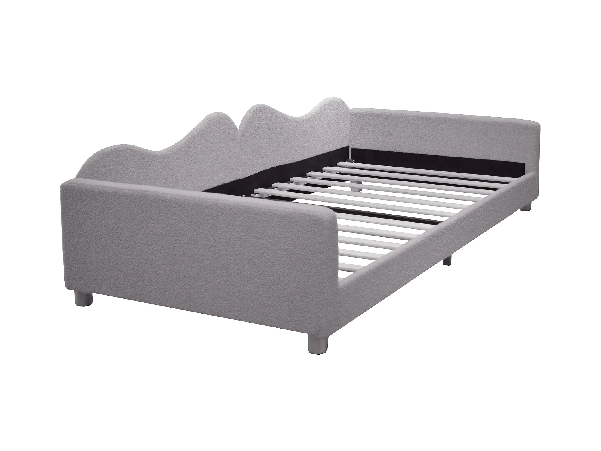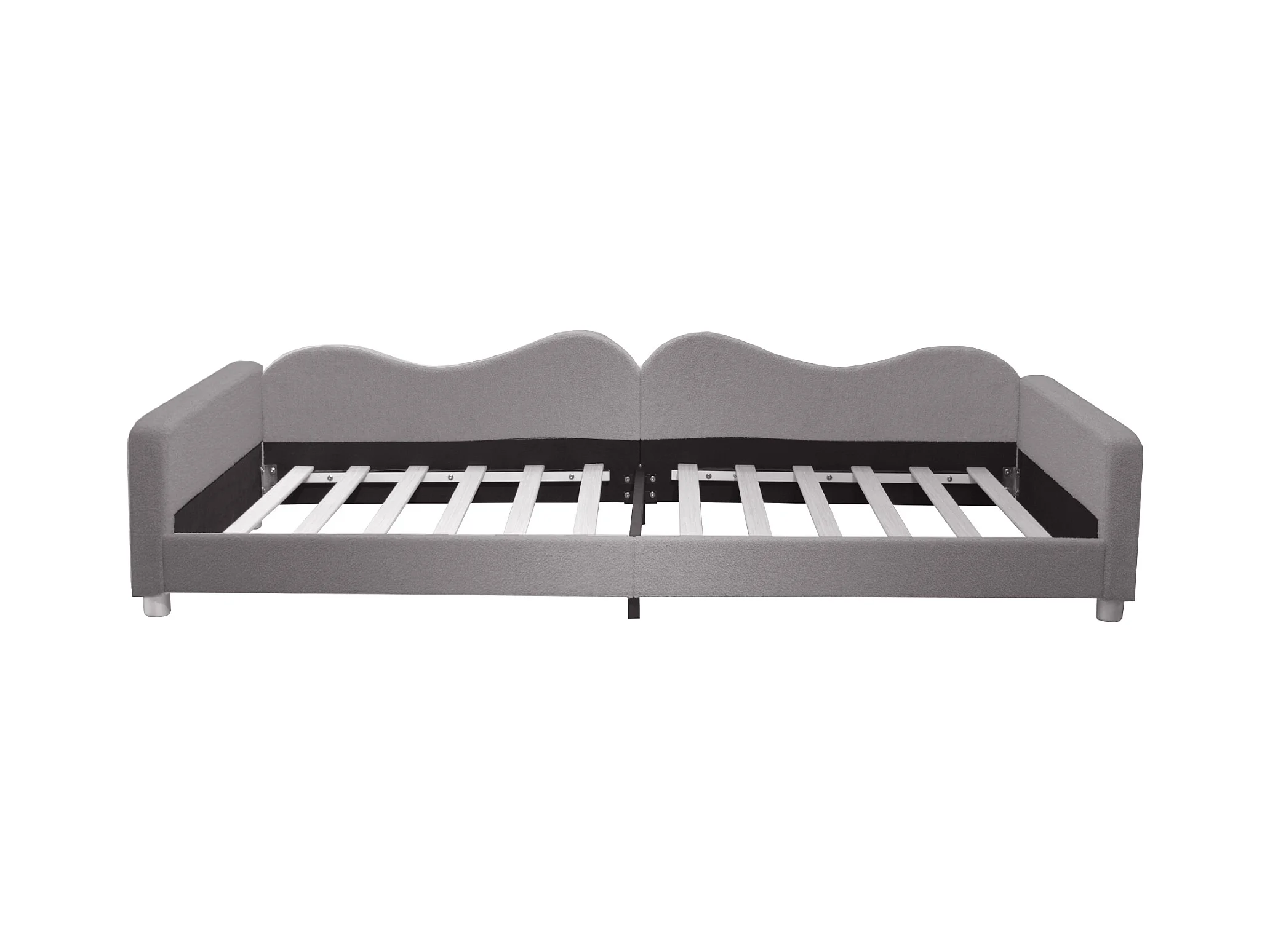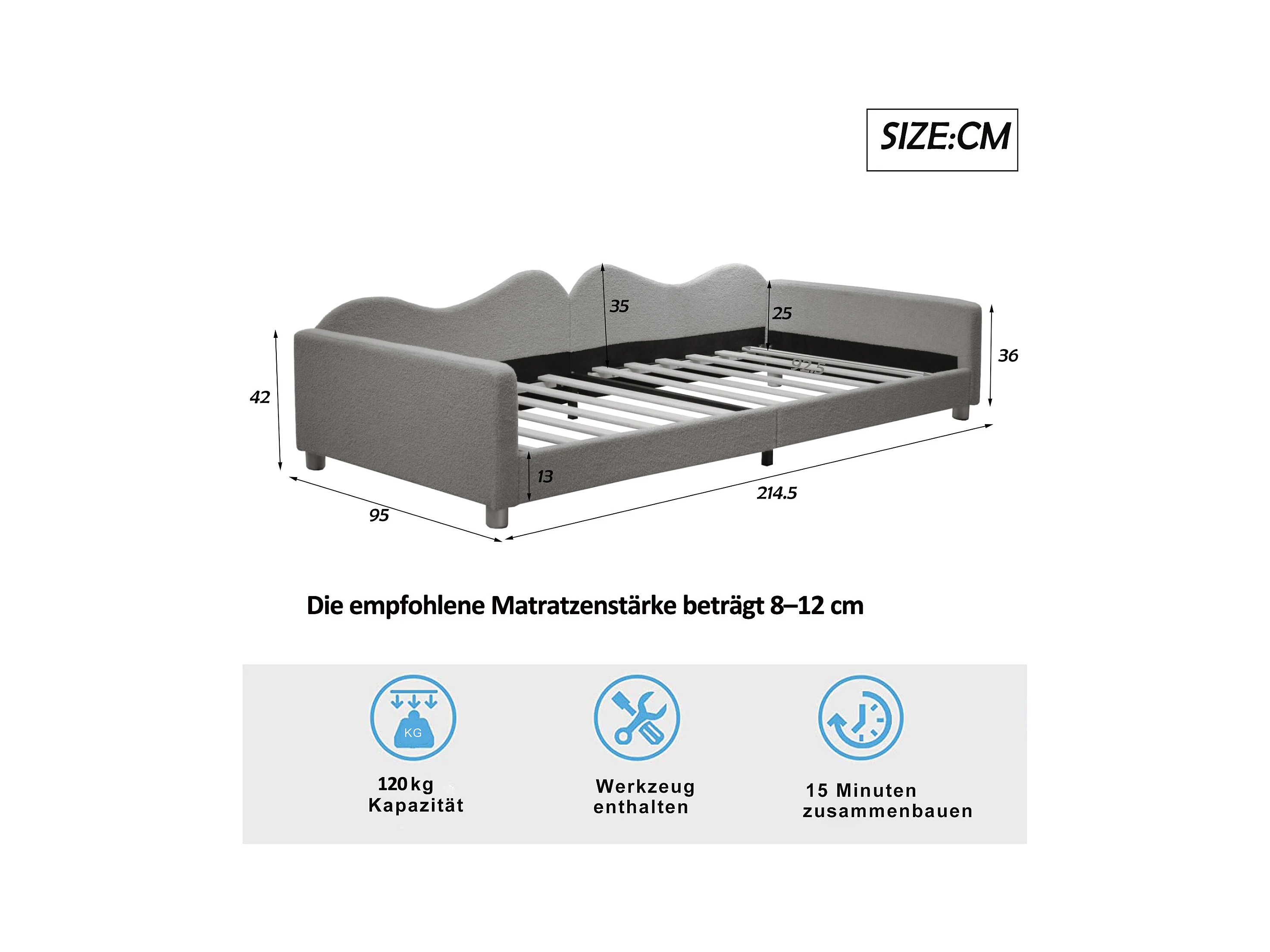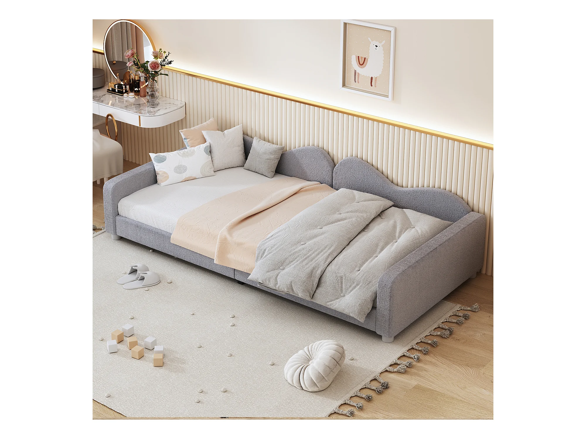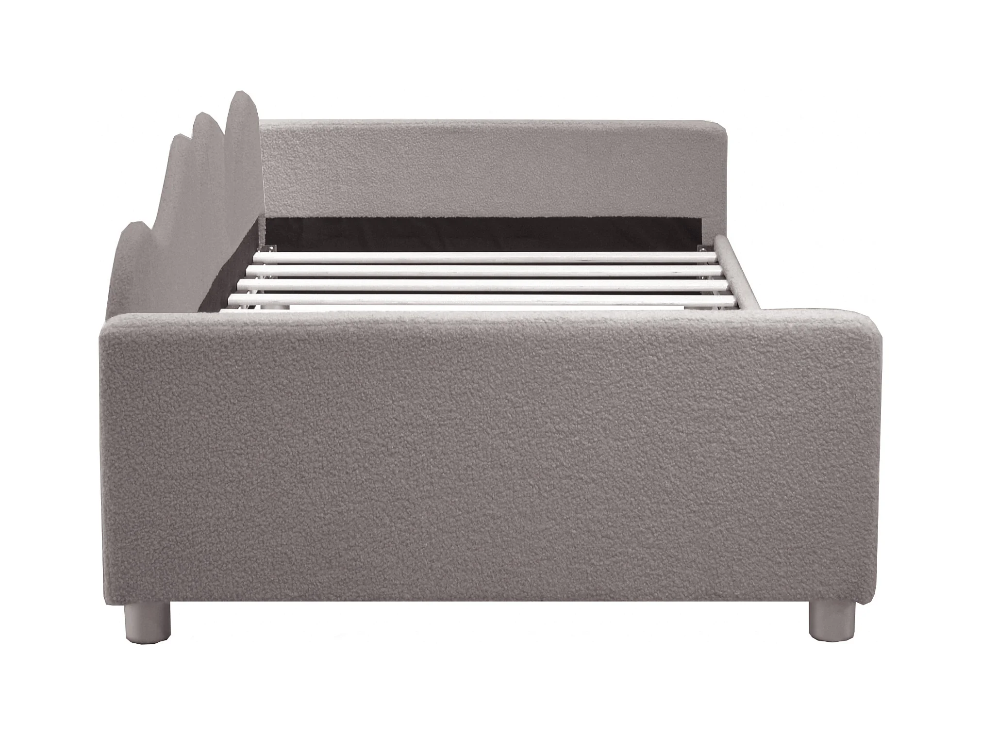Lit enfant 90x200 cm - canapé-lit avec accoudoirs et dossier - sommier à lattes en bois - peluche gris