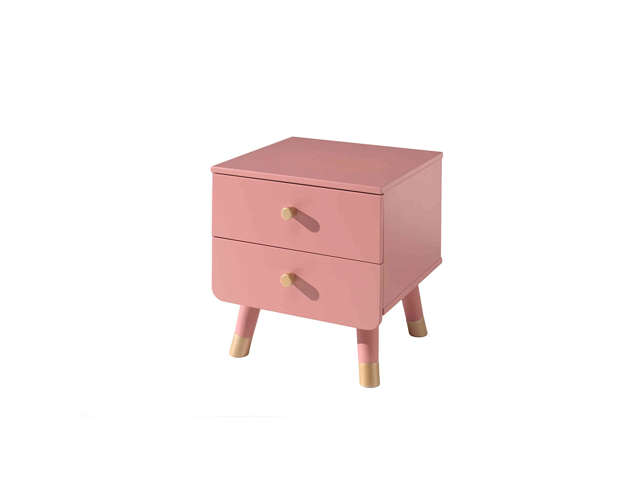 Lit enfant 90x200 en bois massif rose + chevet enfant rose 2 tiroirs - CB2031