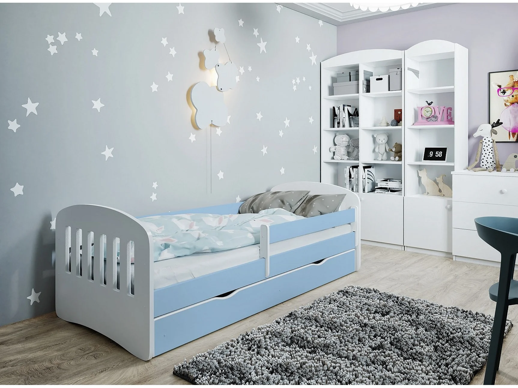 Lit enfant avec barrière de sécurité amovible bleu Klaky-Matelas mousse-80x180-Tiroirs Avec tiroir