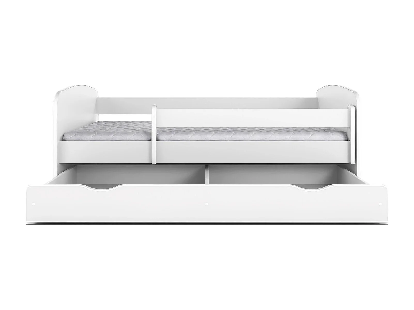 Lit enfant blanc avec sommiers et barrière de sécurité amovible Drimy-80x180