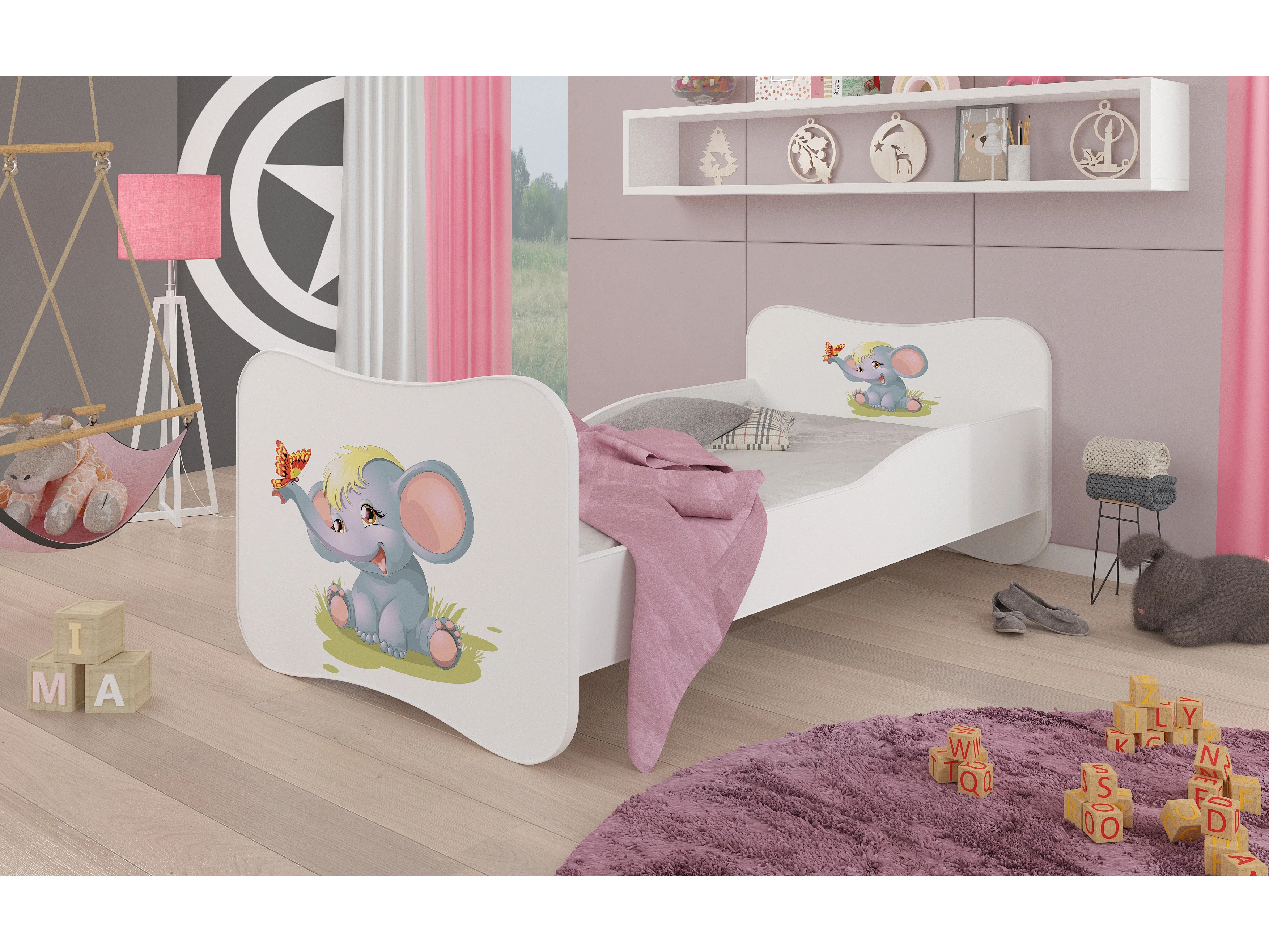 Lit enfant bois blanc imprimé éléphant 70x140 ou 80x160 - Sommier et matelas inclus - Ondula-70x140