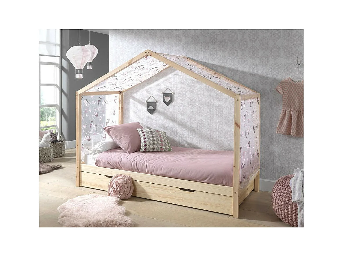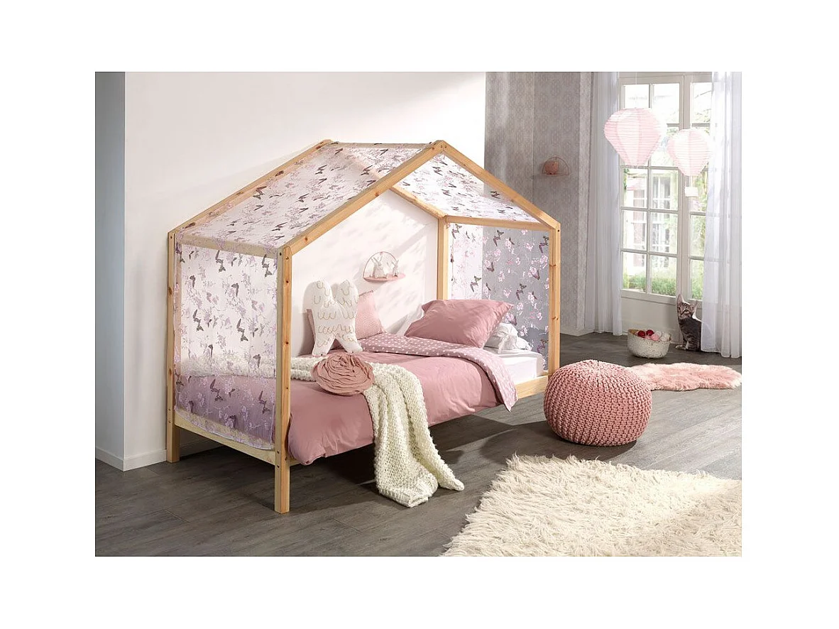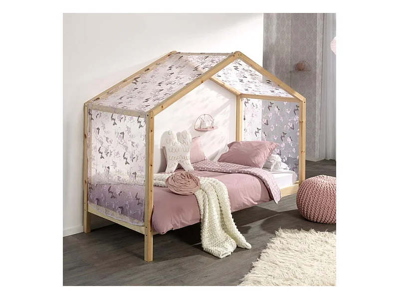 Lit Enfant Cabane & Voile "Dallas II" 90x200cm Naturel