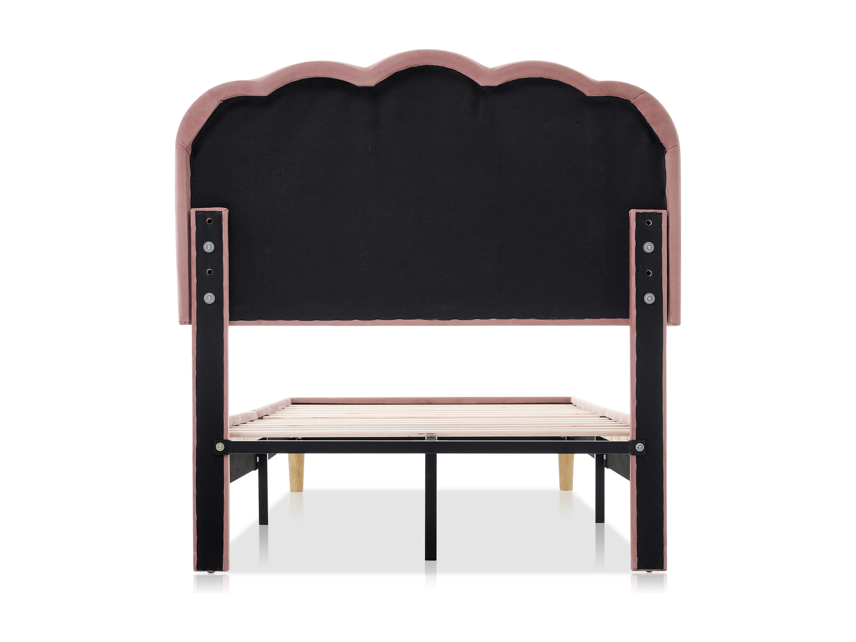 Lit enfant 90x190cm avec sommier - tête de lit réglable à LED - cadre de lit en bois - velours rose (sans matelas)