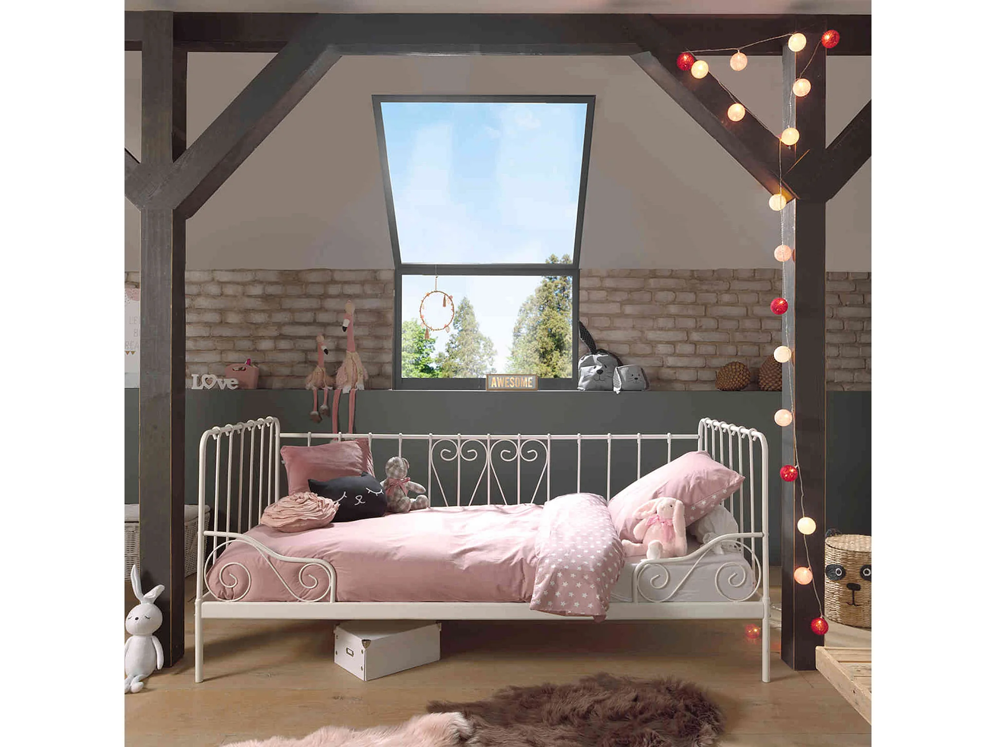 Lit enfant en métal blanc 90x200 - LI2032