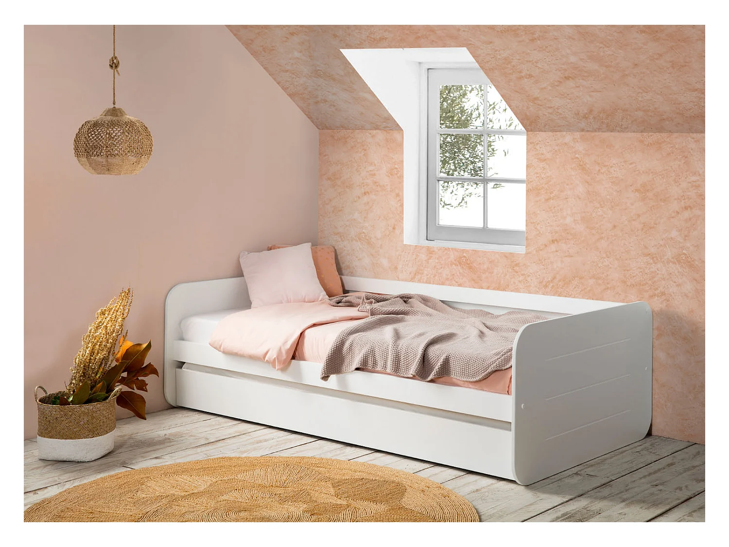 Lit enfant gigogne en MDF coloris blanc - Longueur 195,2 x Profondeur 105 x Hauteur 62 cm