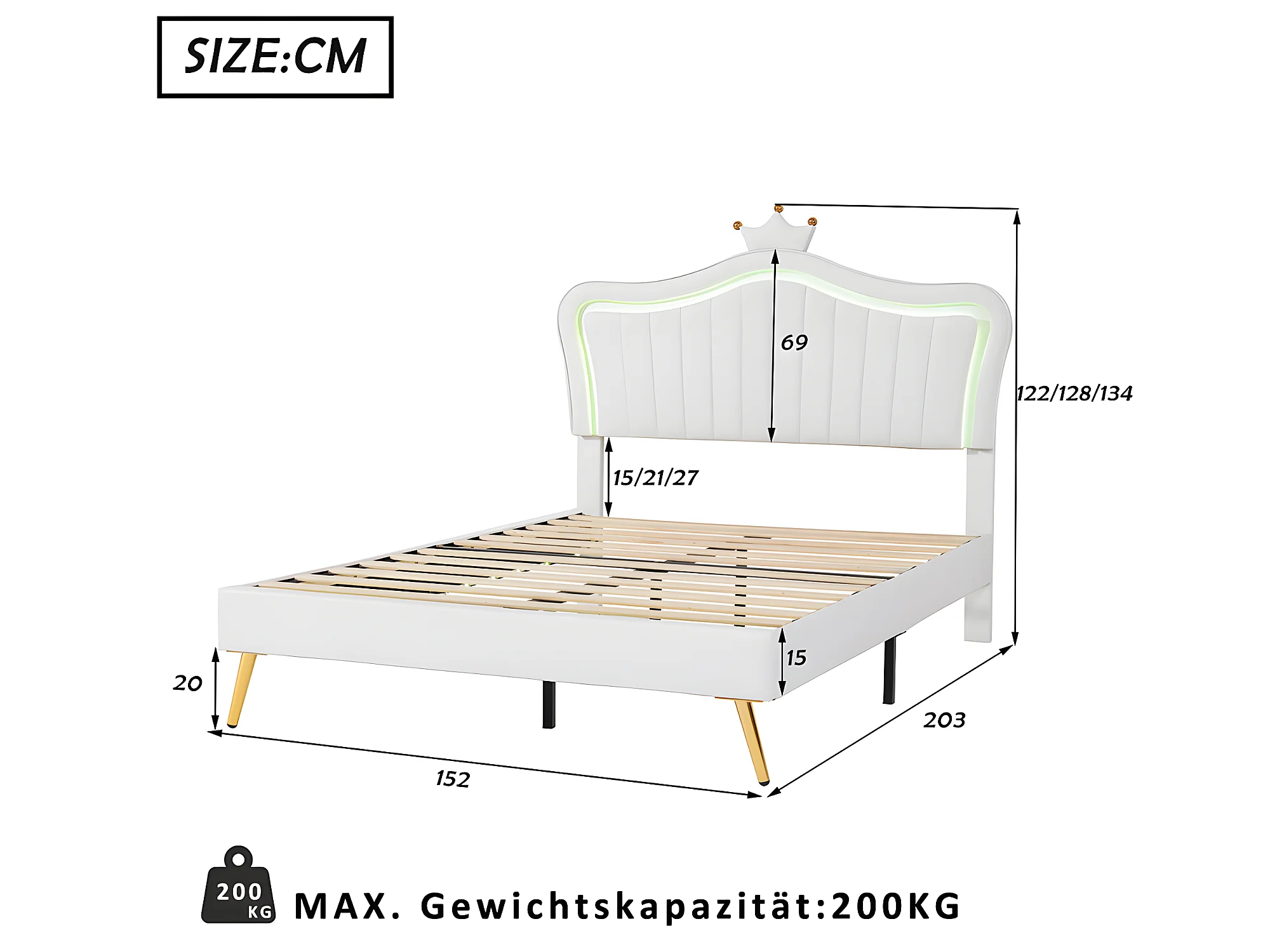 Lit enfant - lit en cuir PU blanc avec lampes LED - 140 x 200 cm - Sweiko