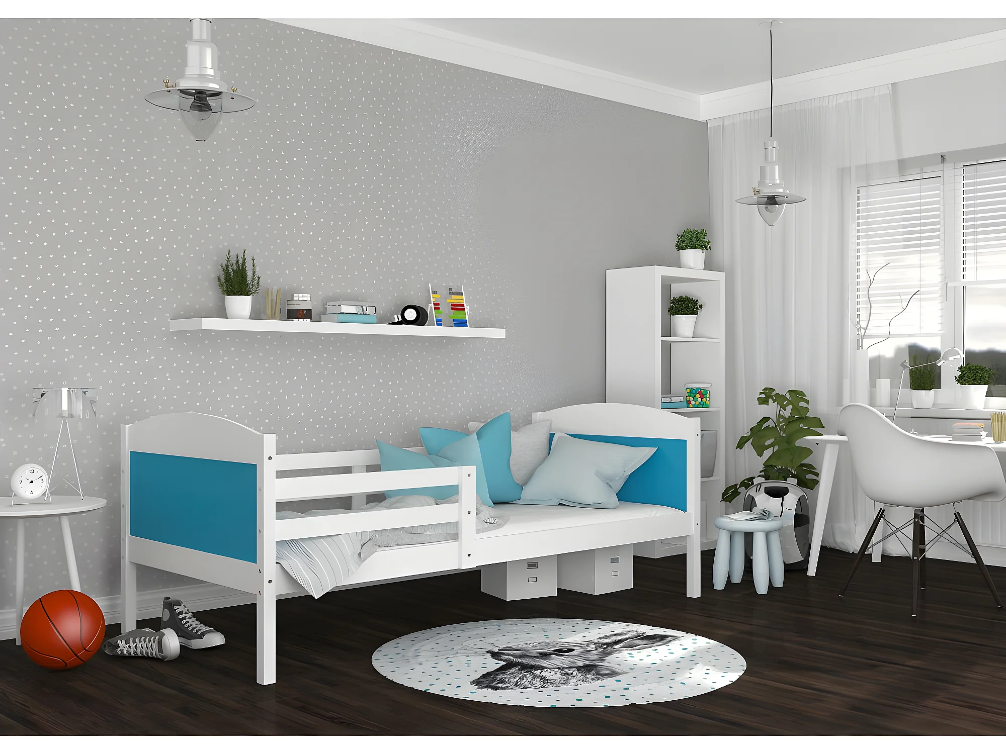 Lit Enfant Mati 90x190 Blanc - bleu Livré avec sommiers