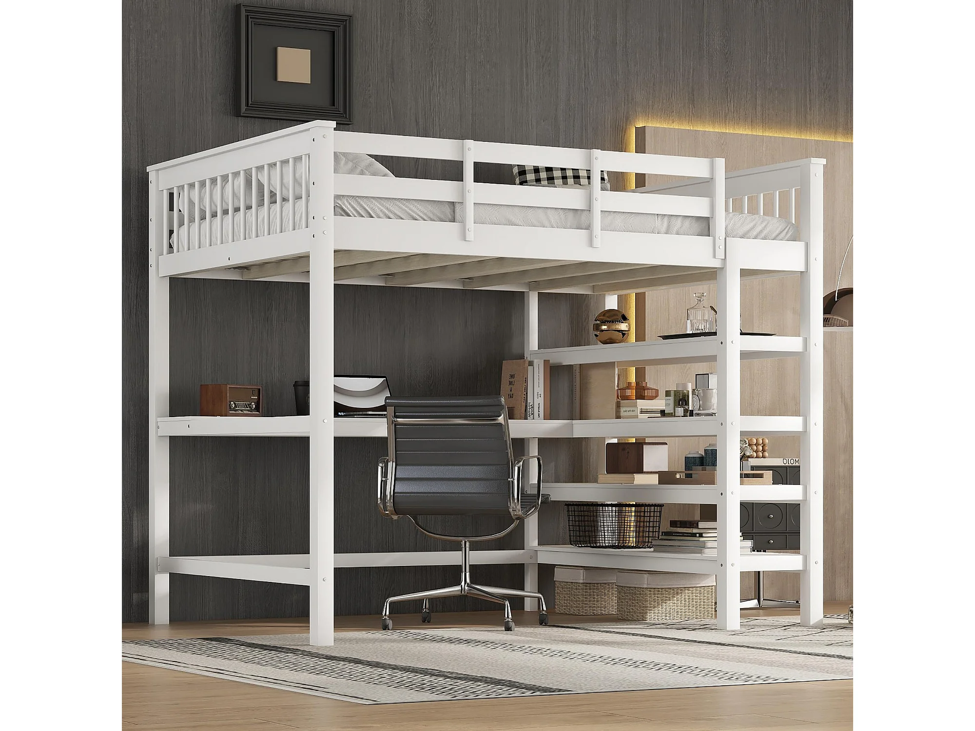 Lit Enfant Mezzanine 140 X 200 cm Avec Rangements - Cadre De Lit Et Bureau Sous Lit - Blanc