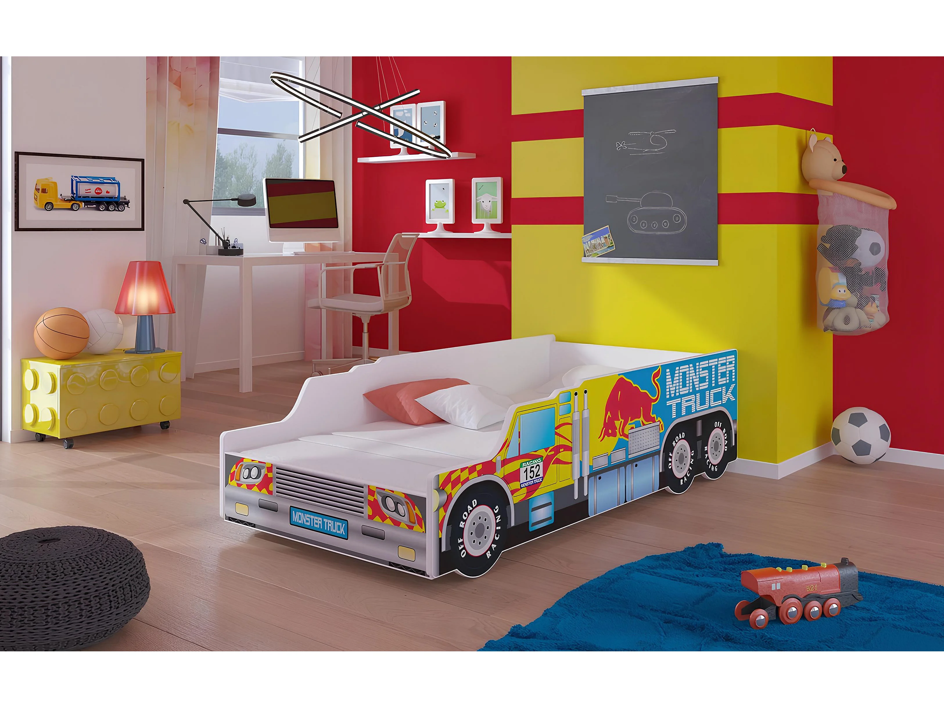 Lit enfant pour garçon Monster Truck avec matelas et sommier inclus - 160 cm x 80 cm