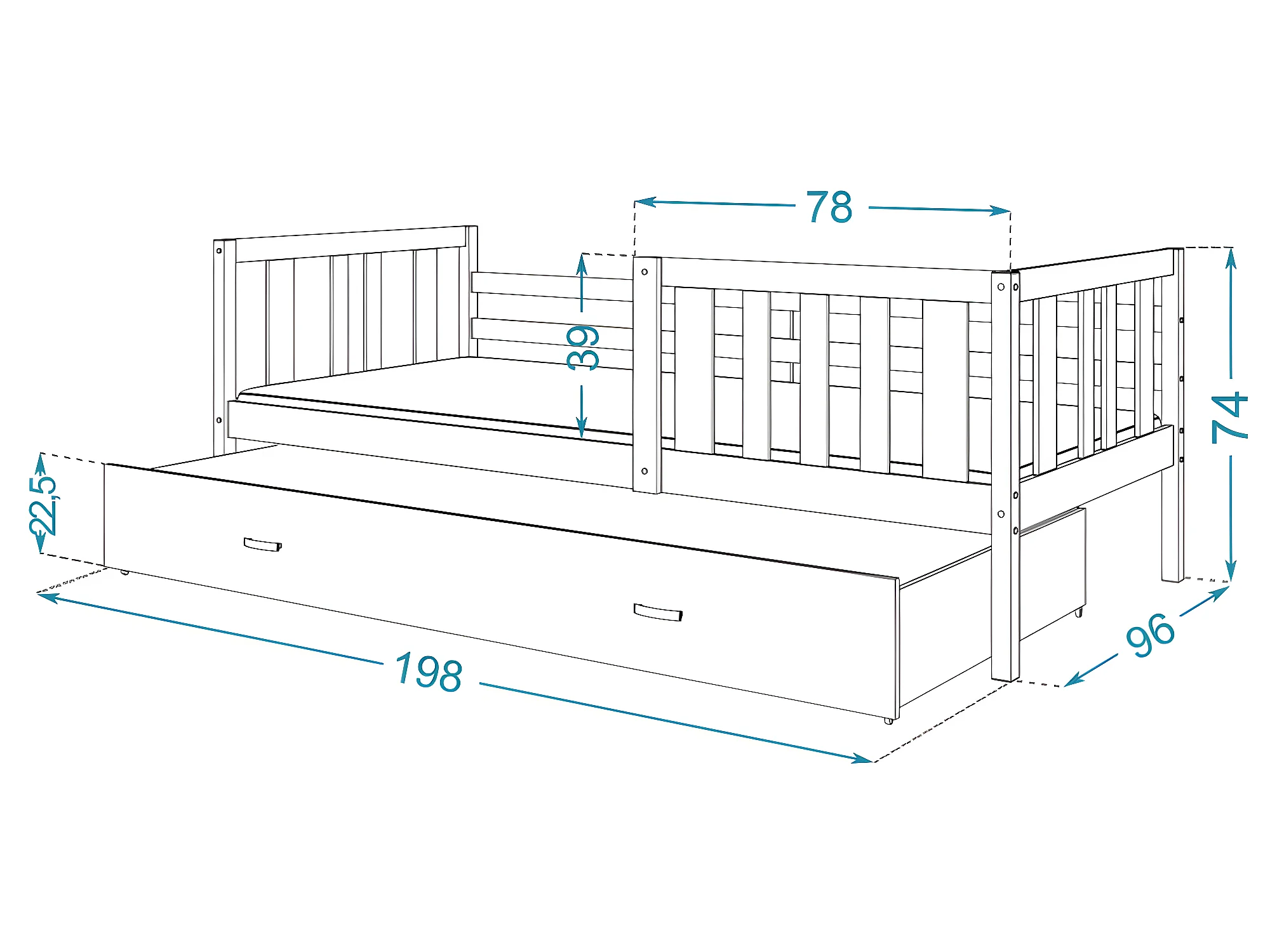 Lit enfant NEMO 90X190 cm - 1 Sommier et Tiroir inclus Blanc