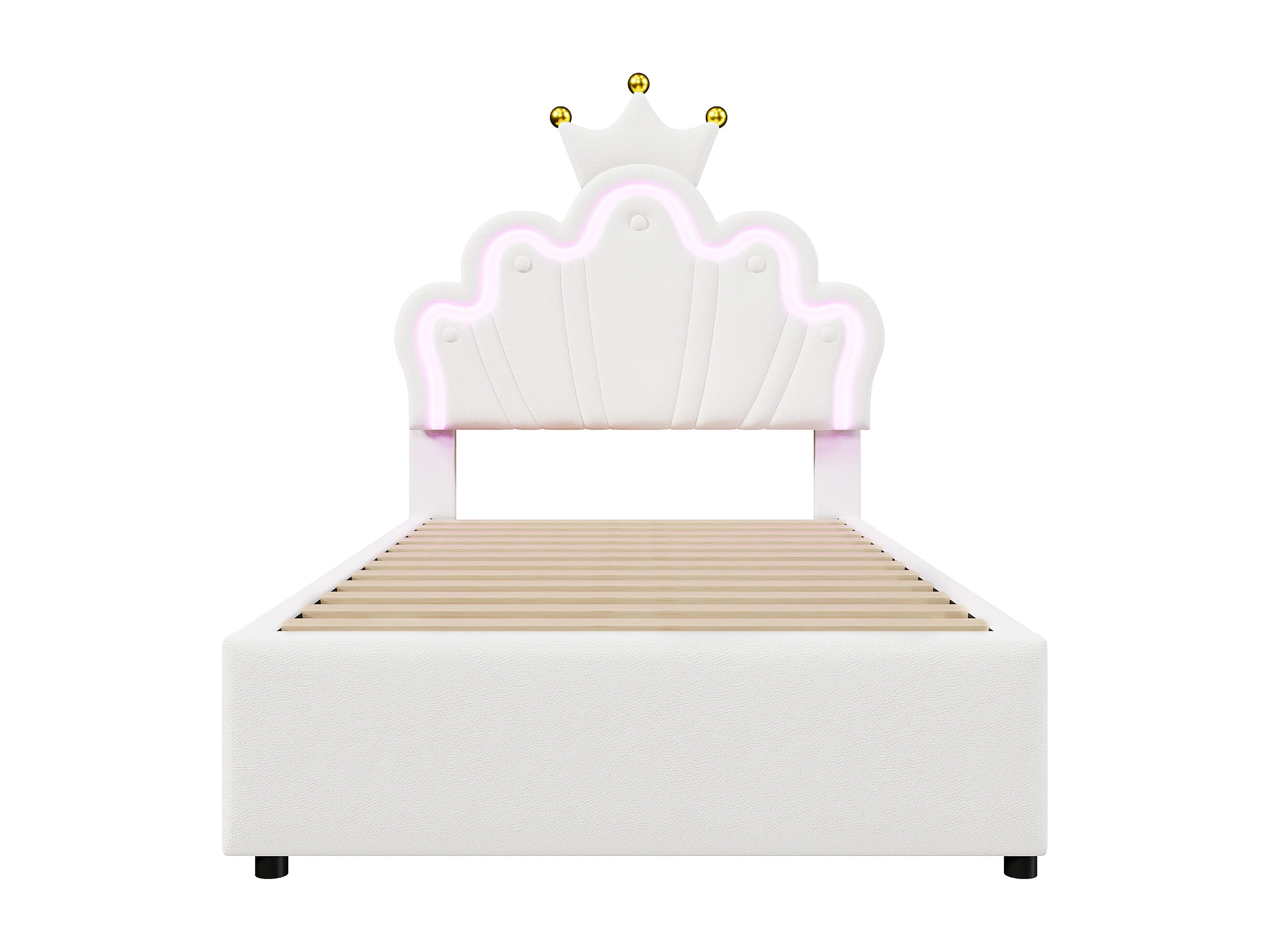 Lit enfant 90x200 cm - PU blanc - éclairage LED - Lit simple avec 2 tiroirs et tête de lit réglable