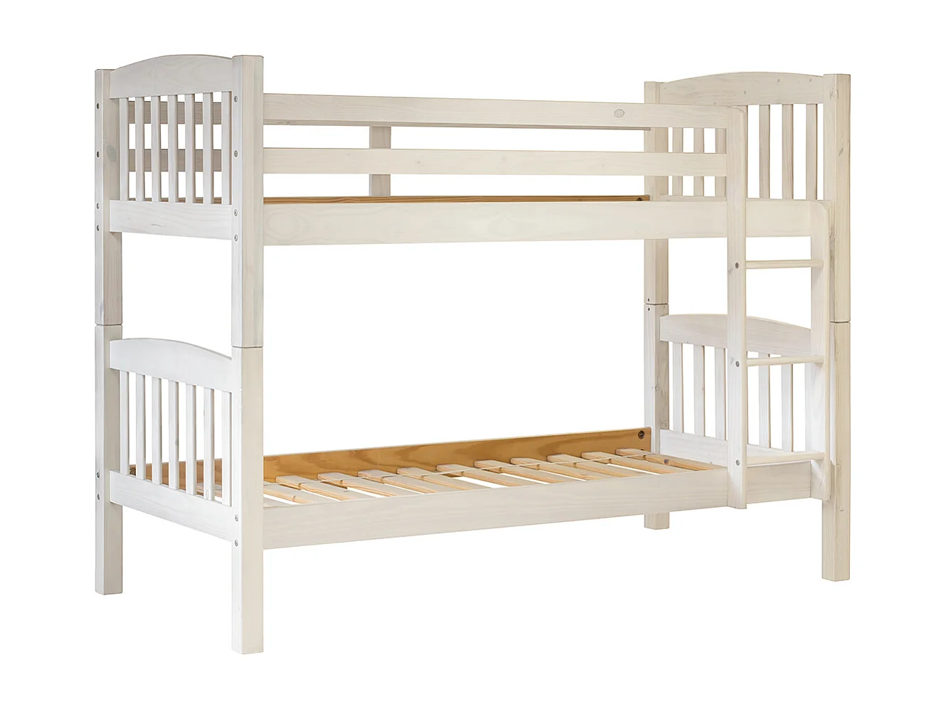 Lit enfant superposé en bois de pin massif coloris lasuré blanc - Hauteur 156 x largeur 205 x profondeur 100 cm