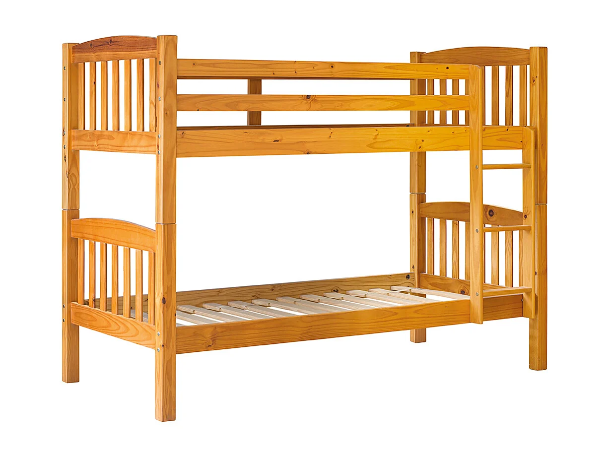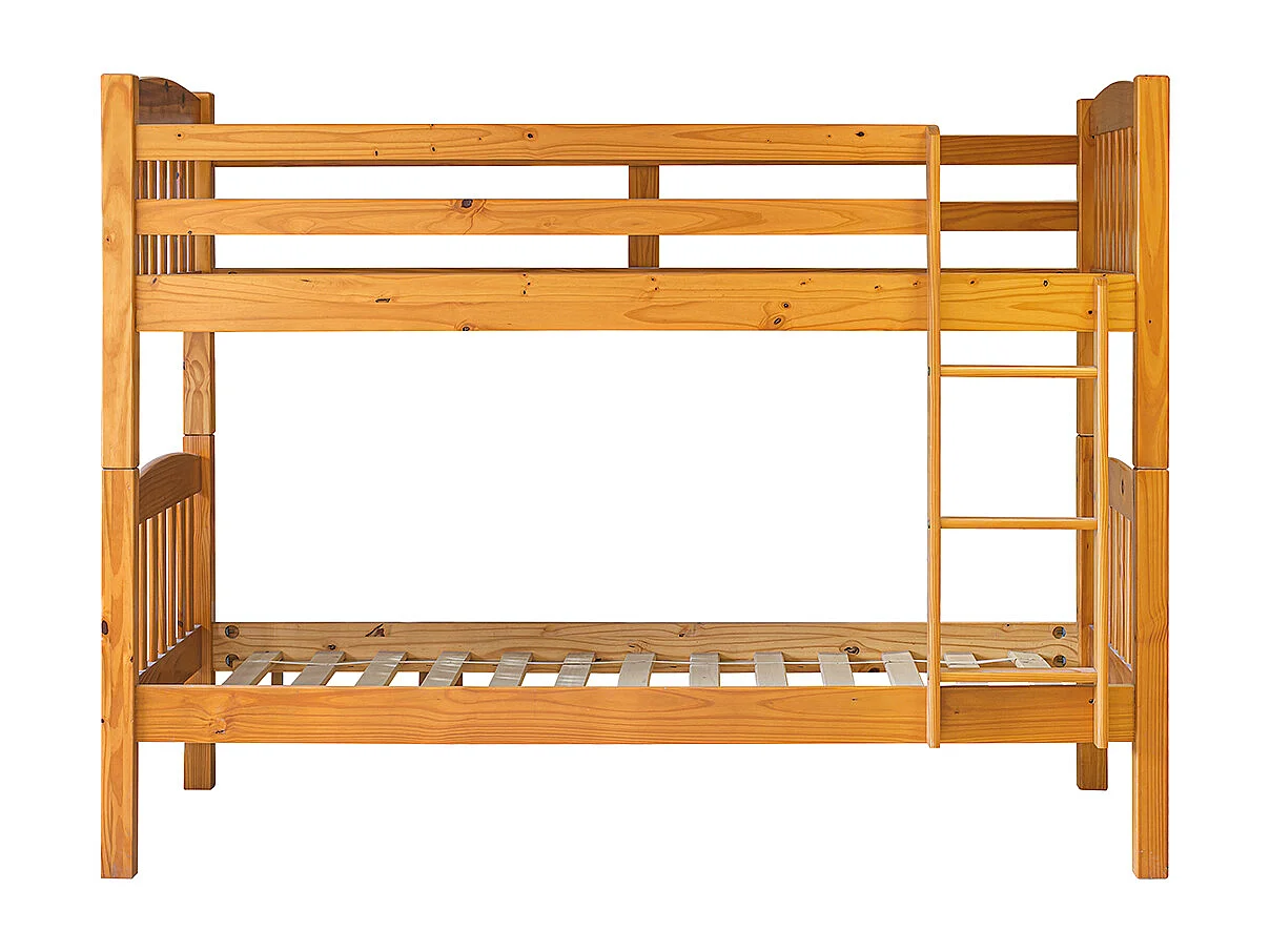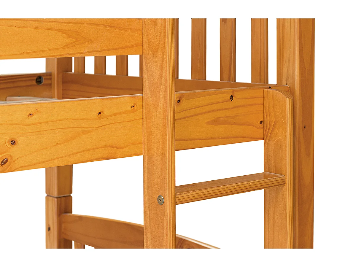 Lit enfant superposé en bois de pin massif coloris miel - Hauteur 156 x largeur 205 x profondeur 100 cm