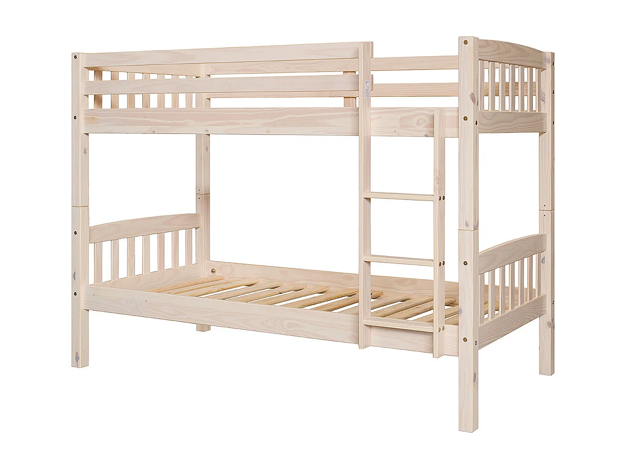 Lit enfant superposé en bois de pin massif coloris naturel - Hauteur 156 x largeur 205 x profondeur 100 cm