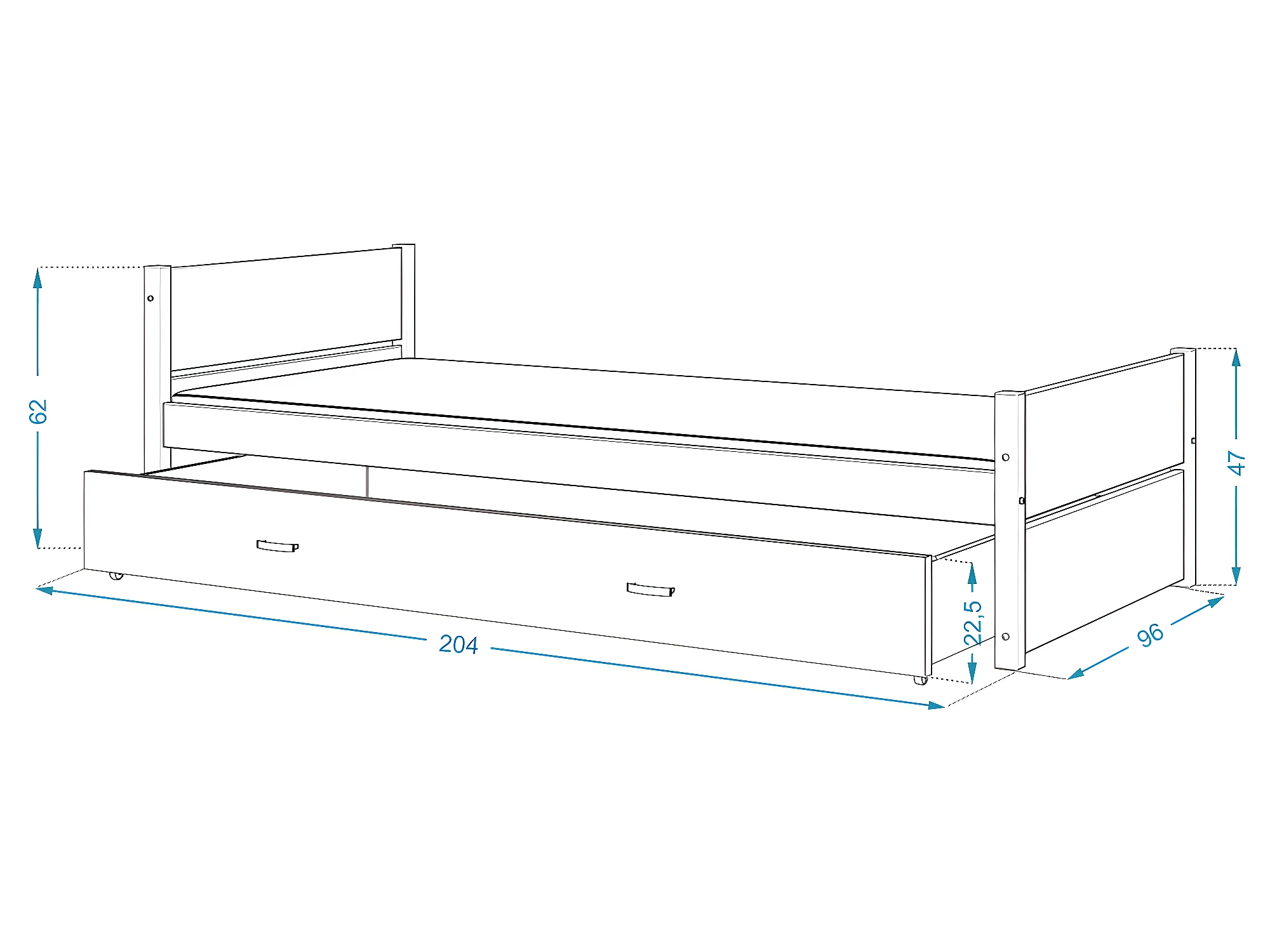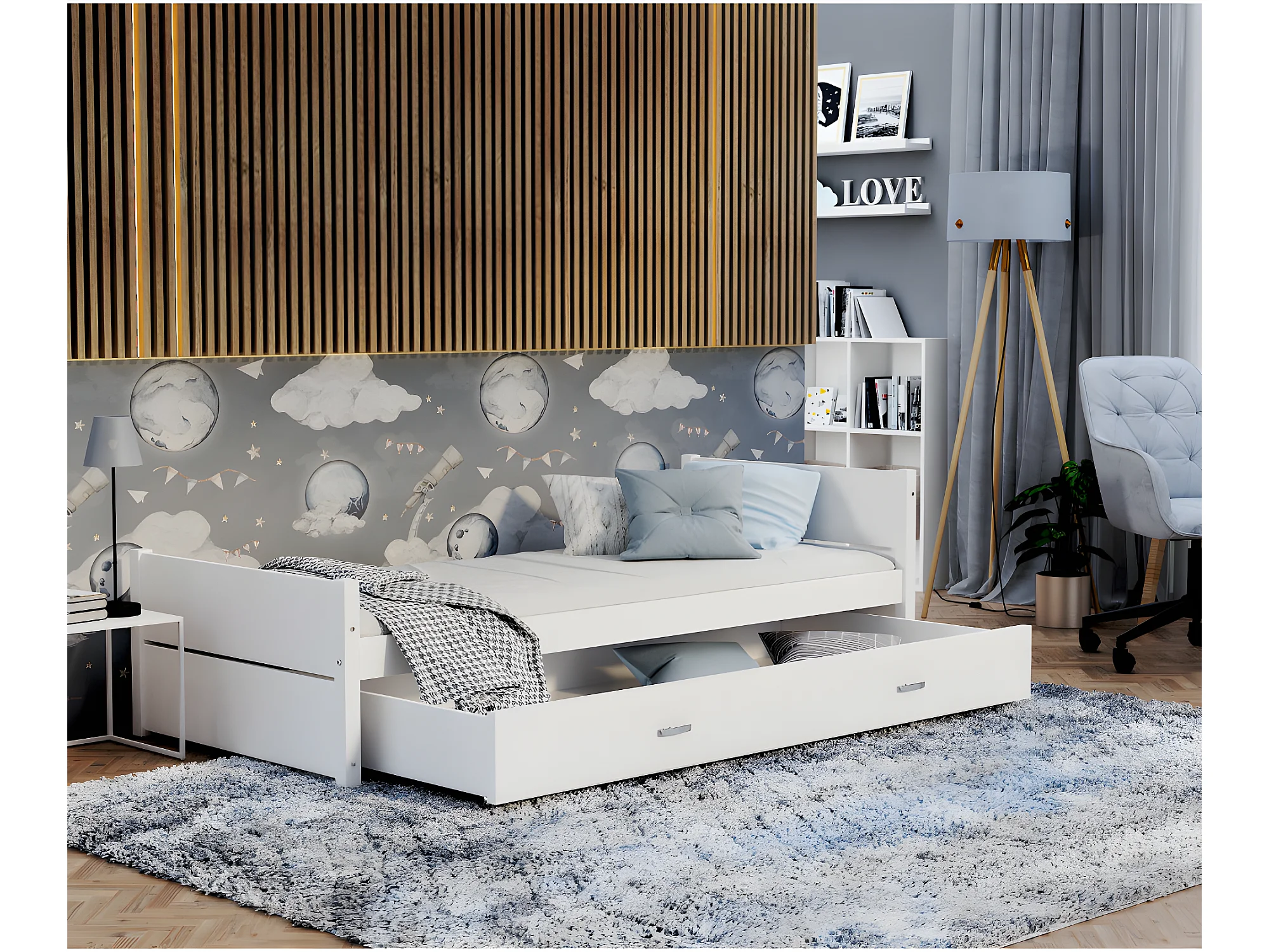 LIT ENFANT TYMON 90x200 + TIROIR Blanc Livré avec le sommiers et tiroir.