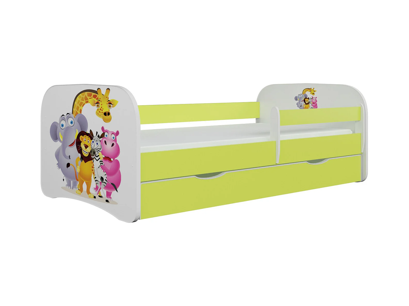 Lit enfant vert Zoo avec sommiers et barrière de sécurité amovible Drimy-80x160