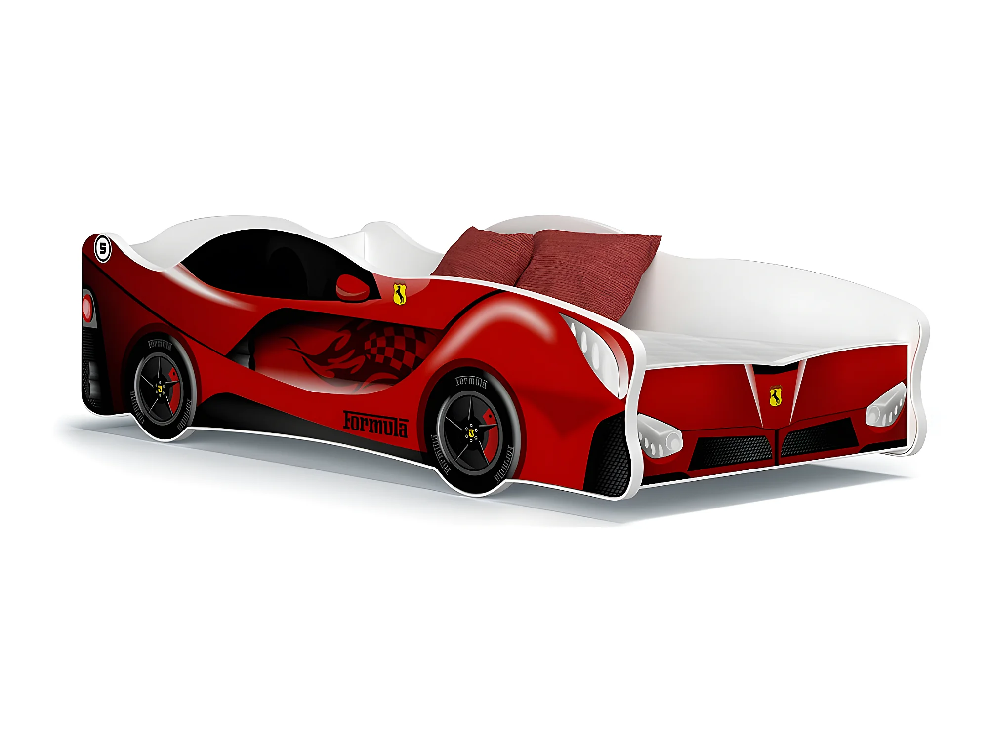 Lit Enfant Voiture 80x160 Ferrari Thème Livré avec sommiers et matelas en mousse de 7cm