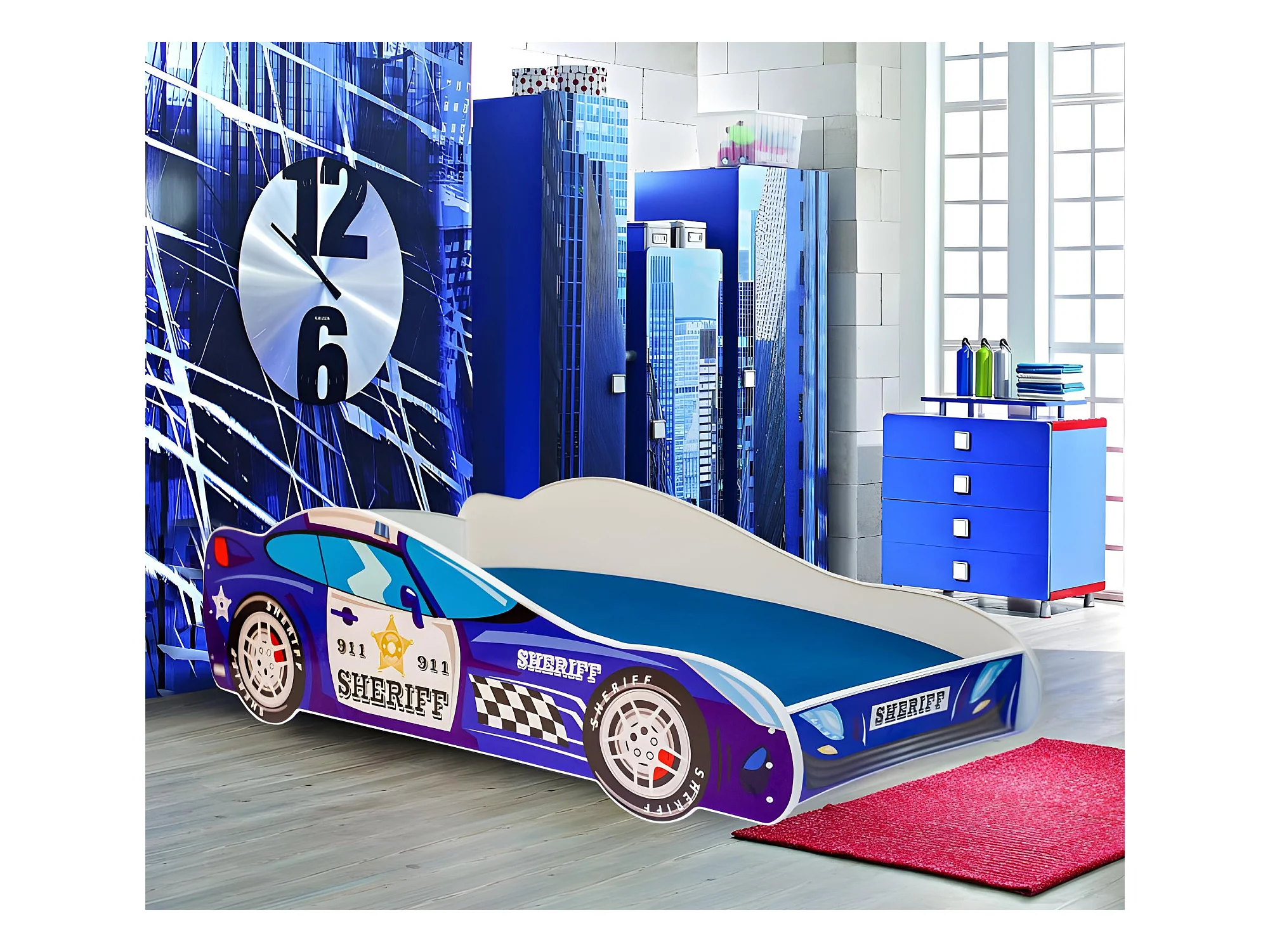 Lit enfant pour garçon voiture de police avec matelas et sommier inclus - 160 cm x 80 cm