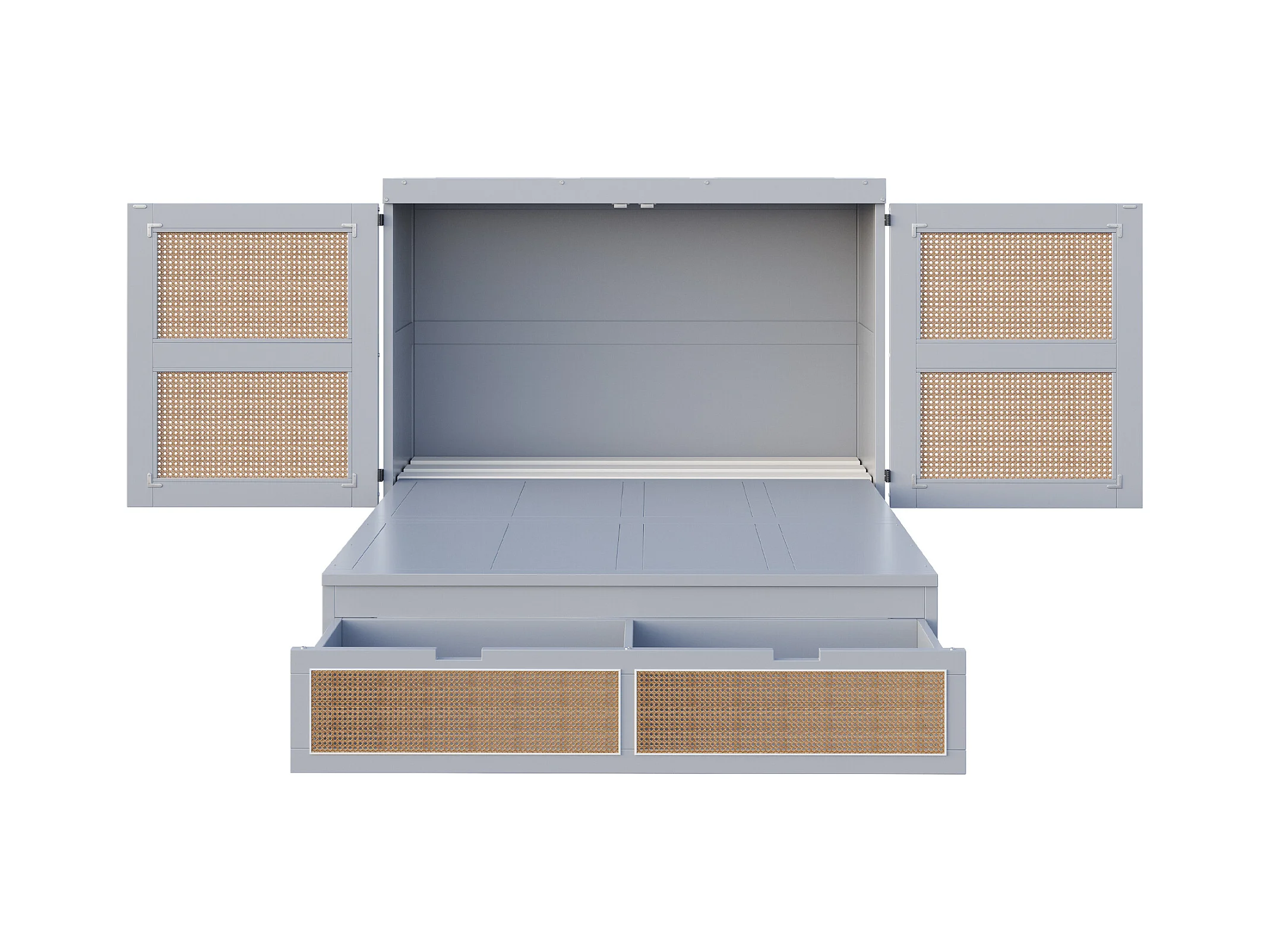 Lit escamotable 140x200cm - avec tiroirs - bois massif - sommier à lattes - gris (matelas non inclus)