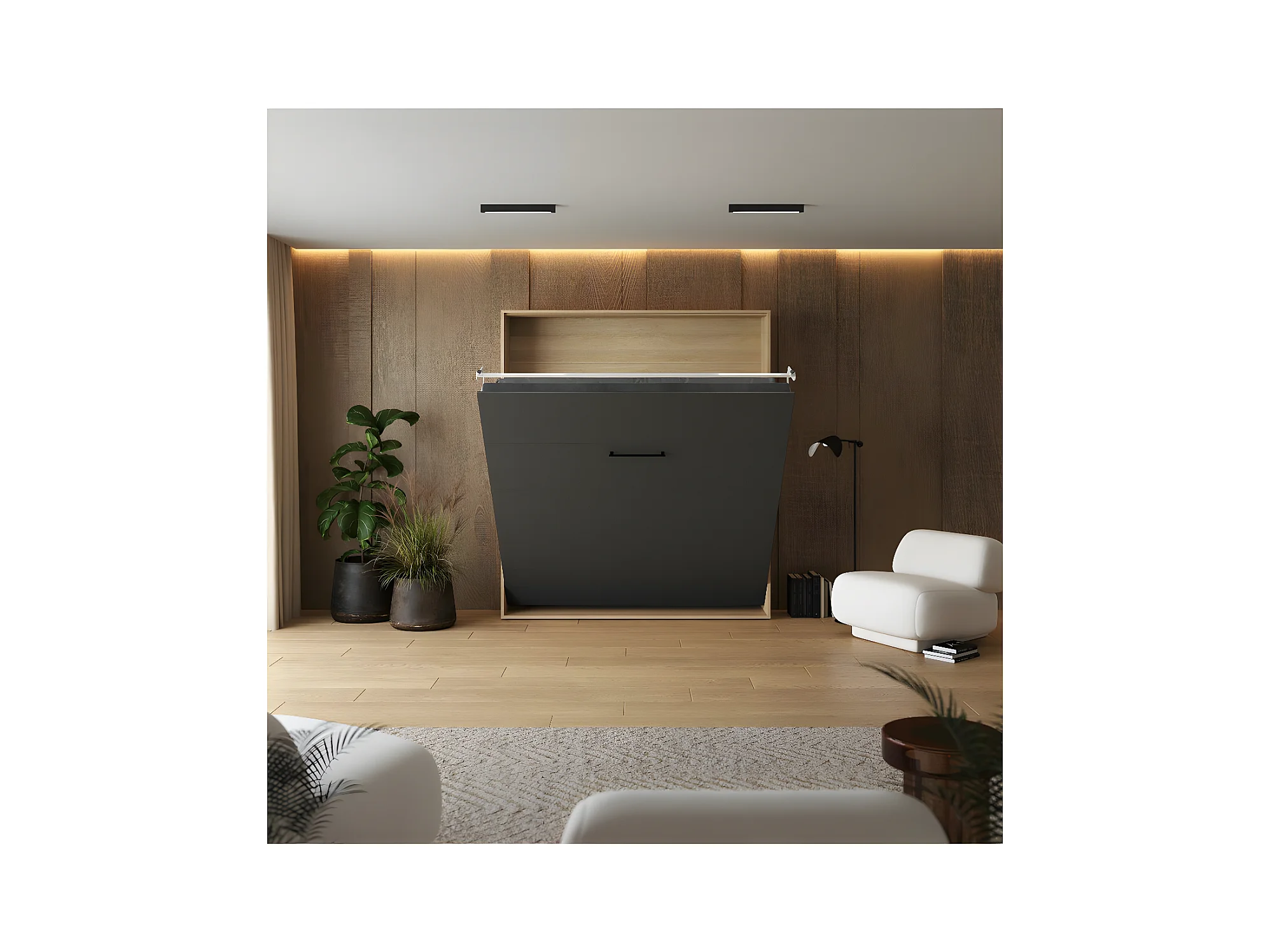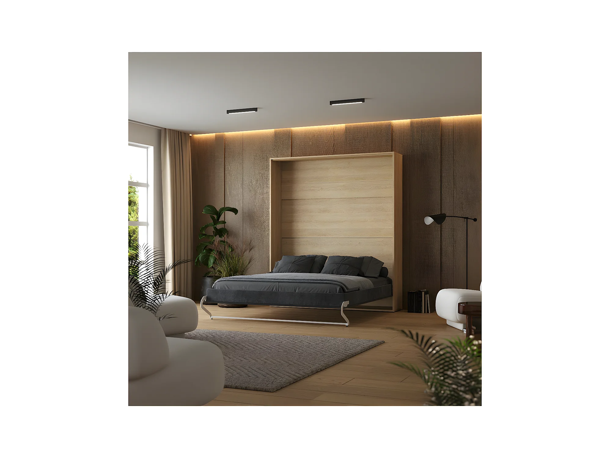 Lit escamotable 180x200cm Vertical Lit Mural SUP M1 cadre rembourré Chêne Kaisersberg/Anthracite