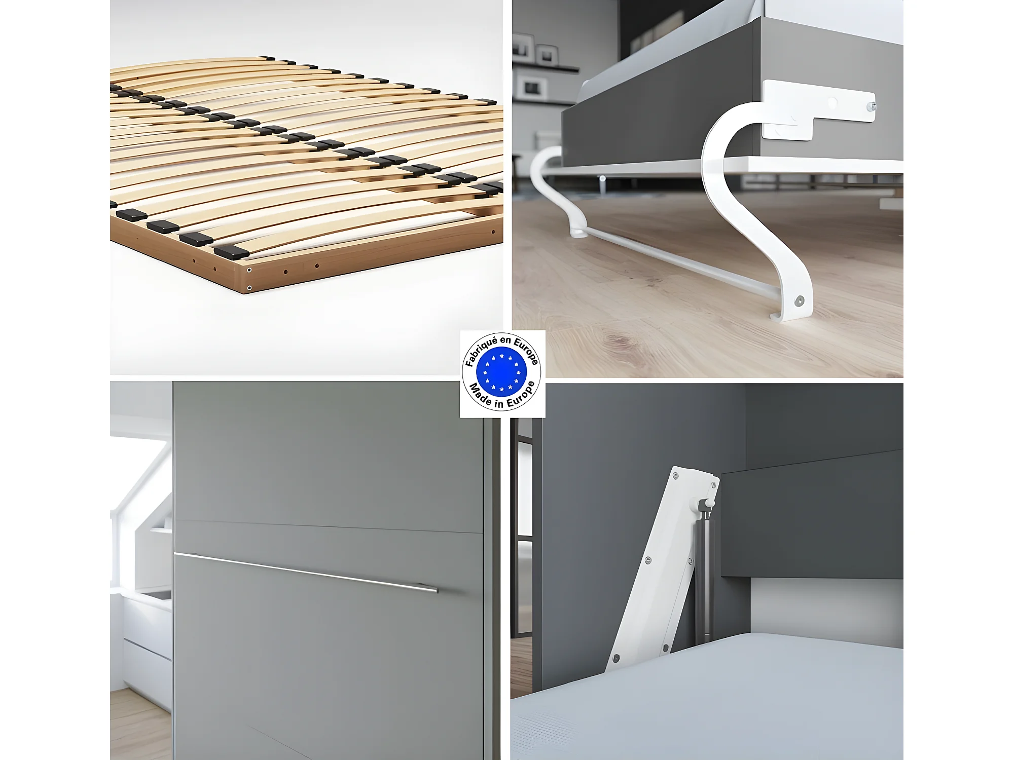 Lit escamotable +2 Placards Vertical 120x200+(50x2)cm Miroir Lit Mural Anthracite/Anthracite