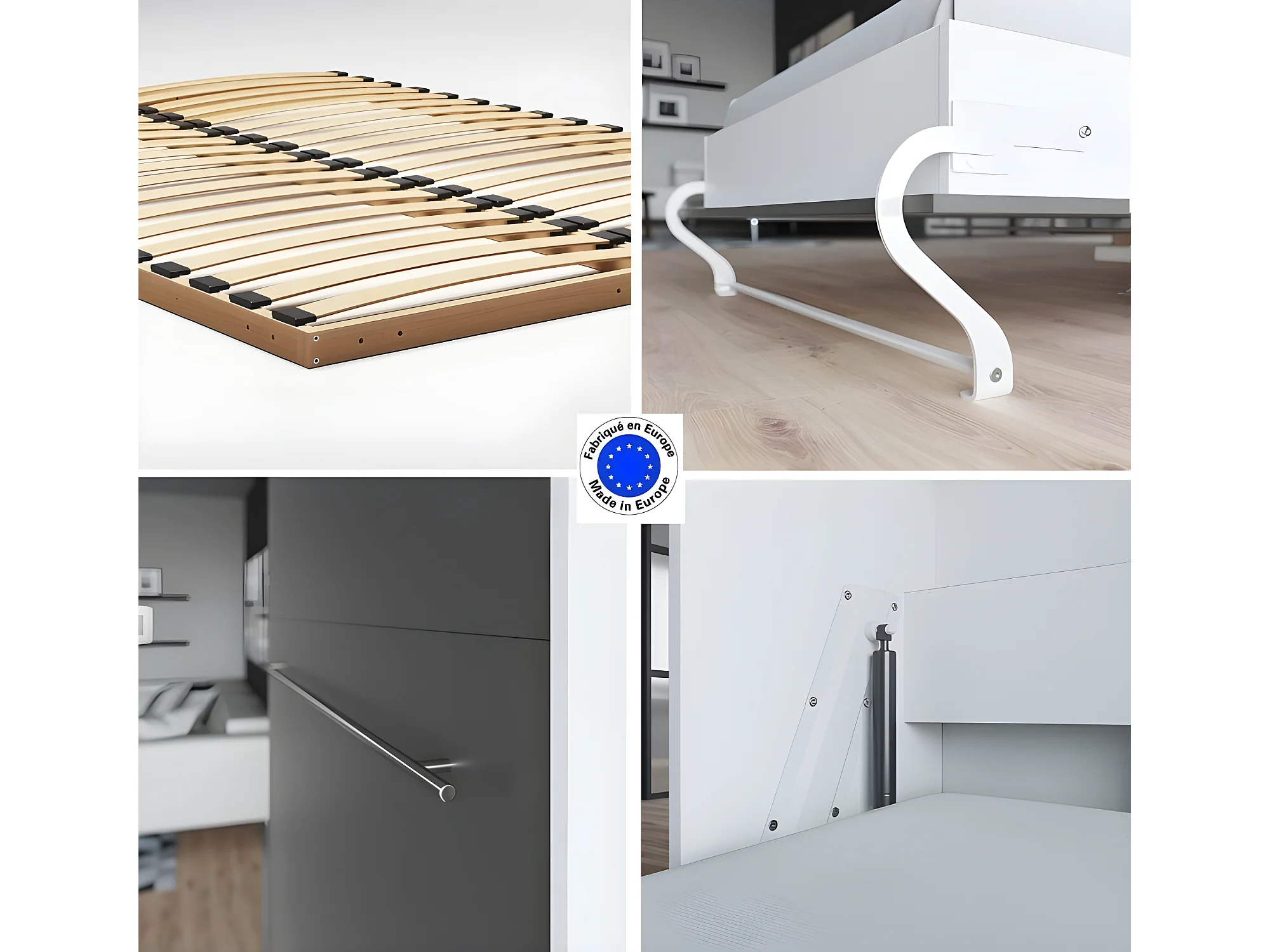 Lit escamotable +2 Placards Vertical 120x200+(50x2)cm Miroir Lit Mural Blanc/Anthracite