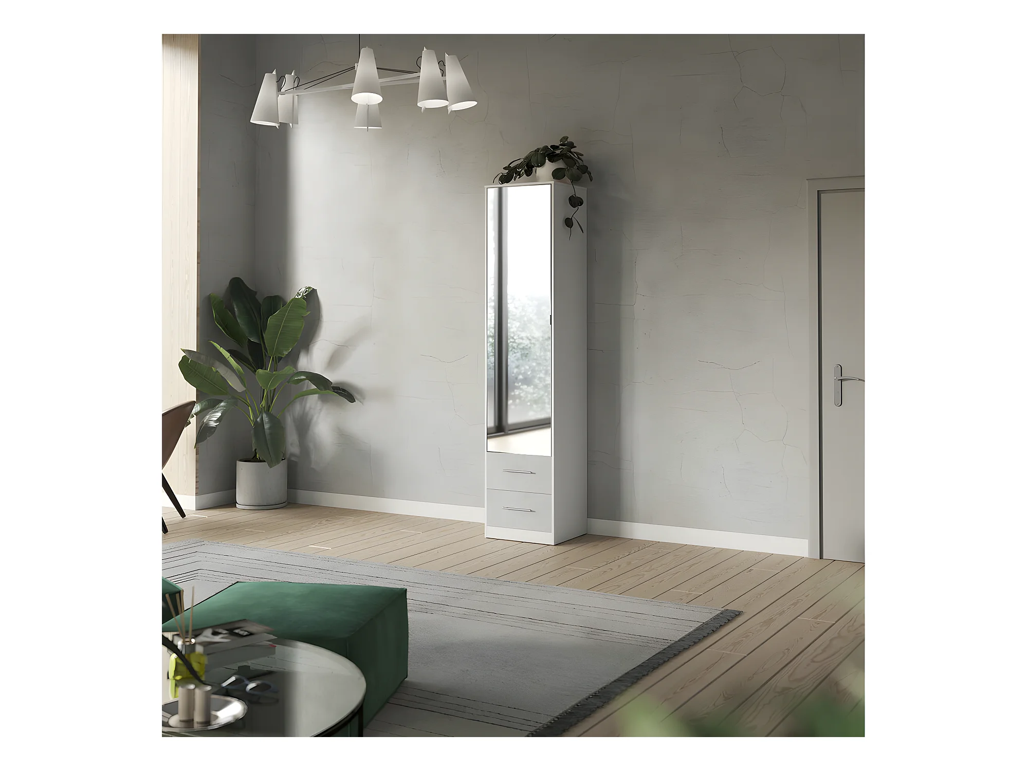 Lit escamotable +2 Placards Vertical 120x200+(50x2)cm Miroir Lit Mural Blanc/Béton