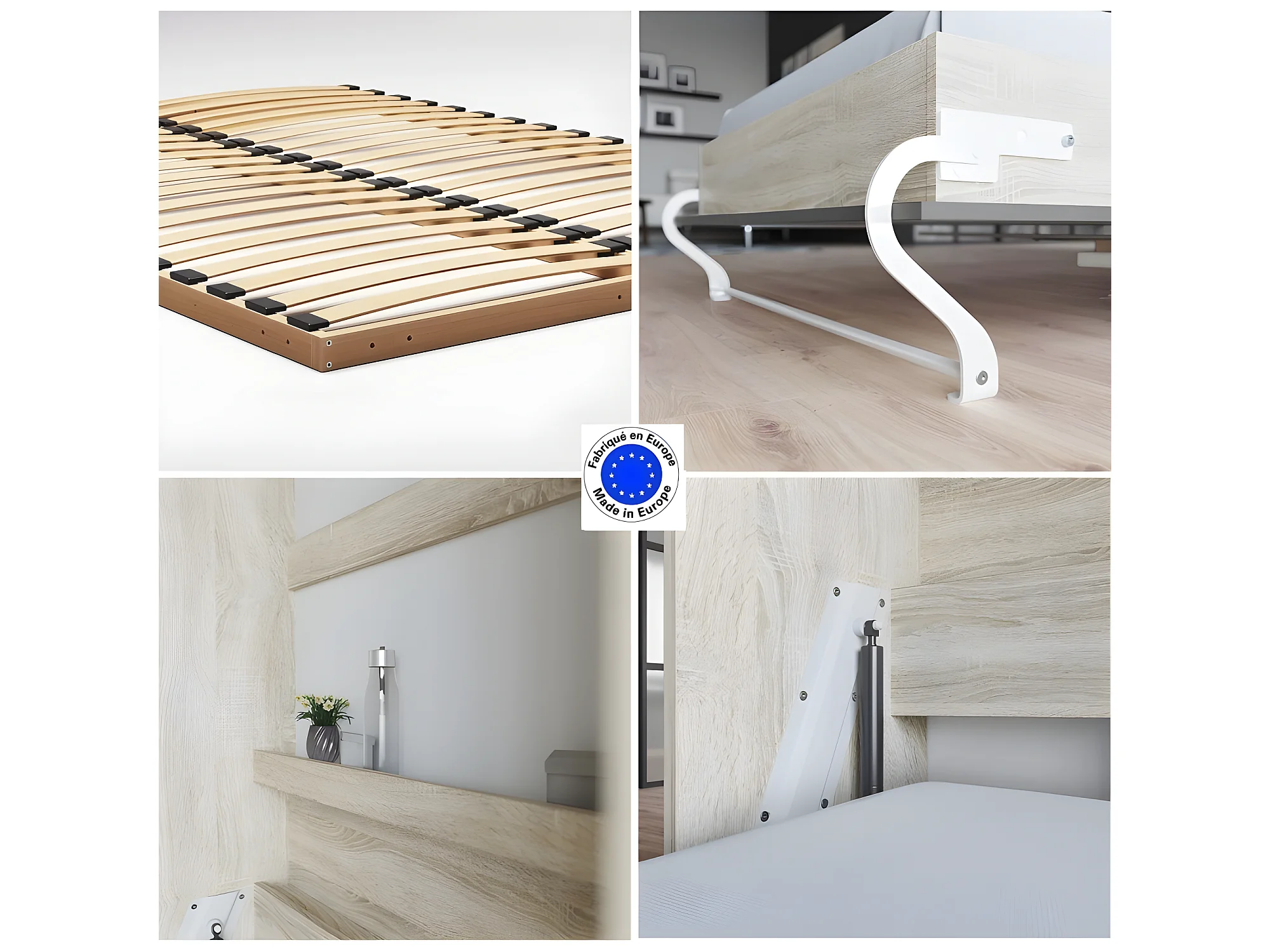 Lit escamotable +2 Placards Vertical 120x200+(50x2)cm Miroir Lit Mural Sonoma/Anthracite brillant