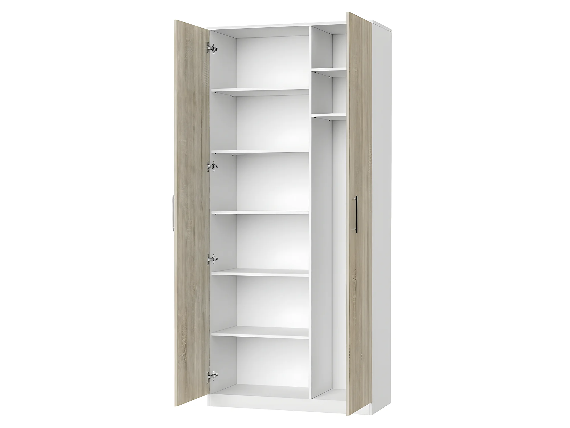 Lit escamotable +2 Placards Vertical 120x200+(80x2)cm Lit Rabattable Lit Mural Standard Blanc /Chêne Sonoma
