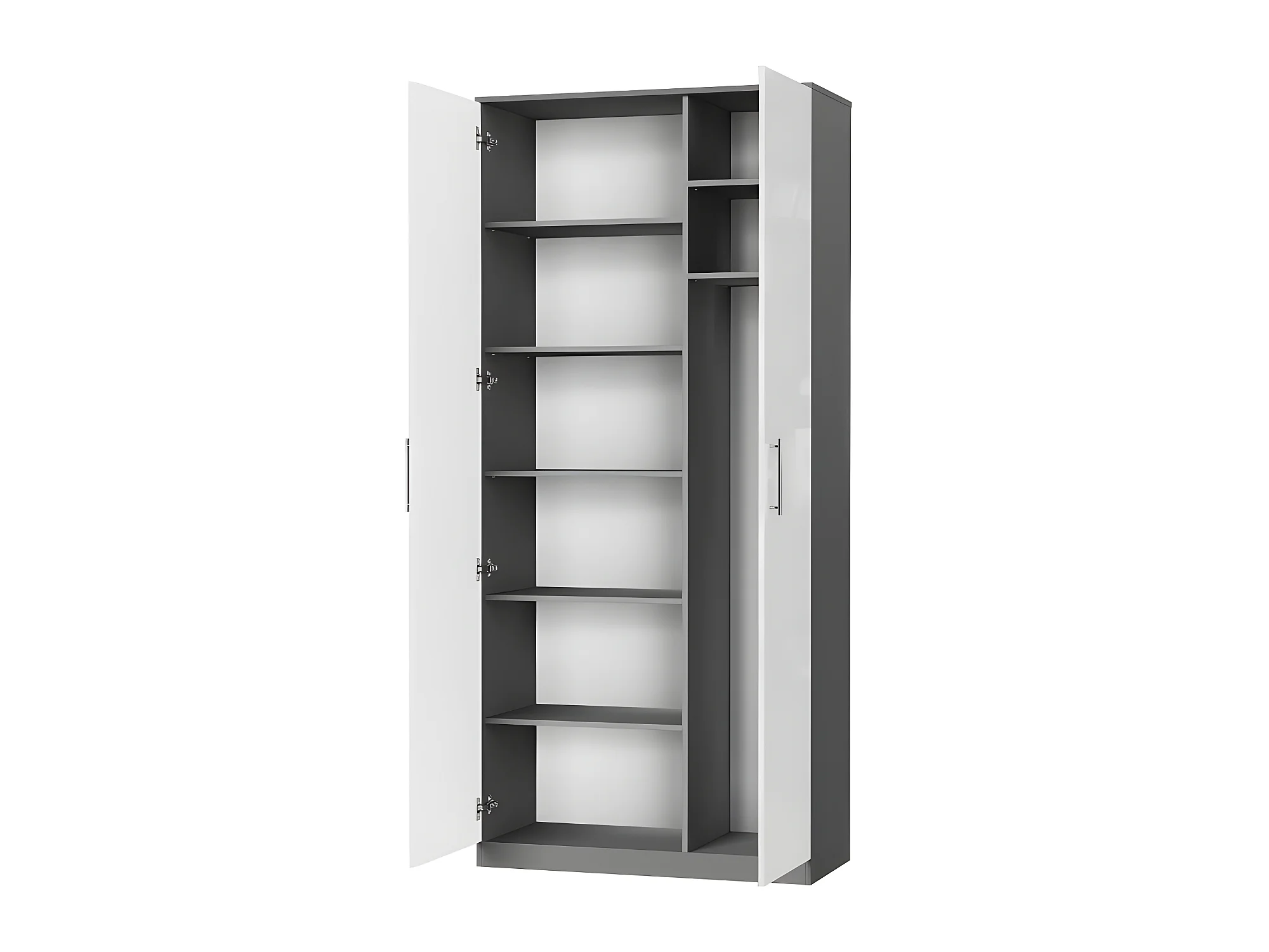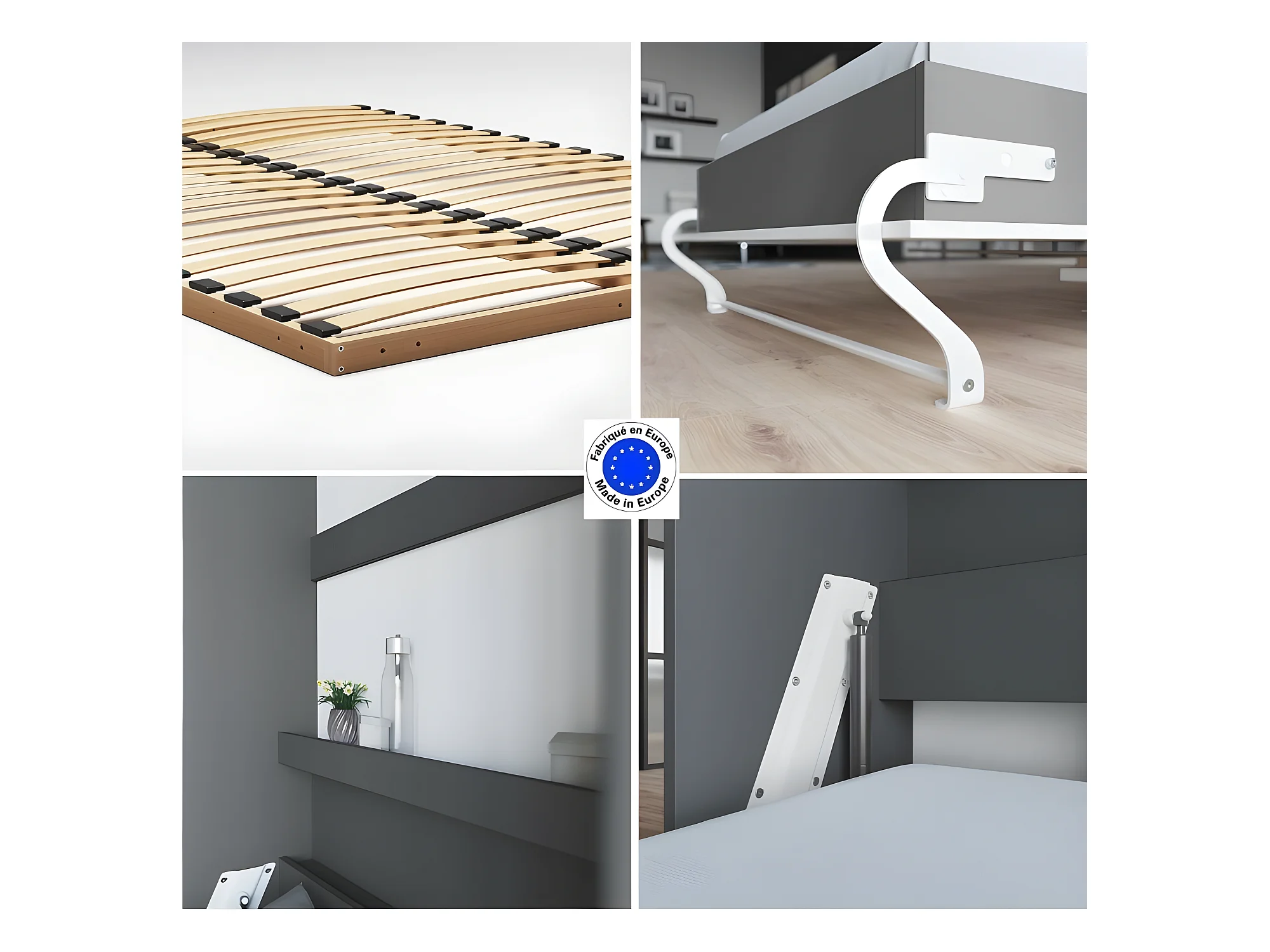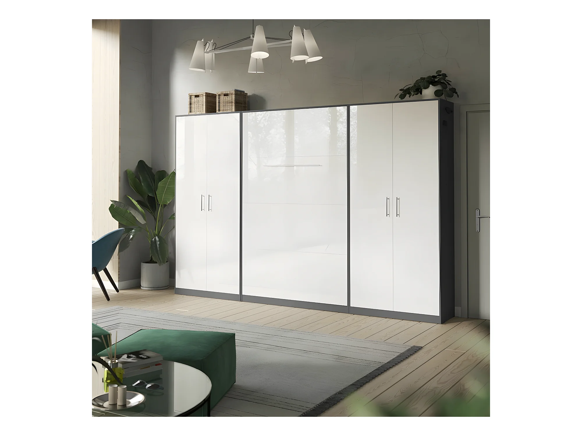 Lit escamotable +2 Placards Vertical 140x200+(100x2)cm Lit Rabattable Lit Mural Standard Anthracite/blanc brillant