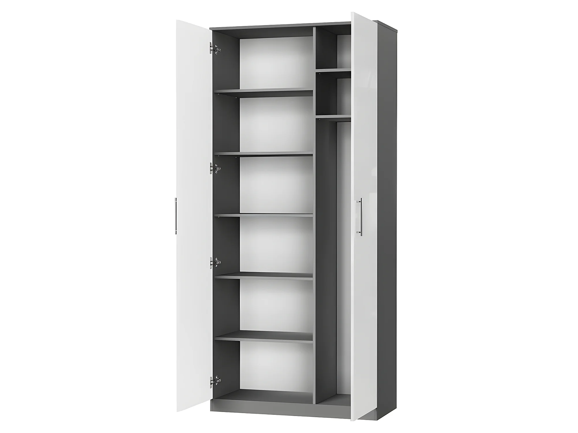 Lit escamotable +2 Placards Vertical 140x200+(80x2)cm Lit Rabattable Lit Mural Standard Anthracite/blanc brillant
