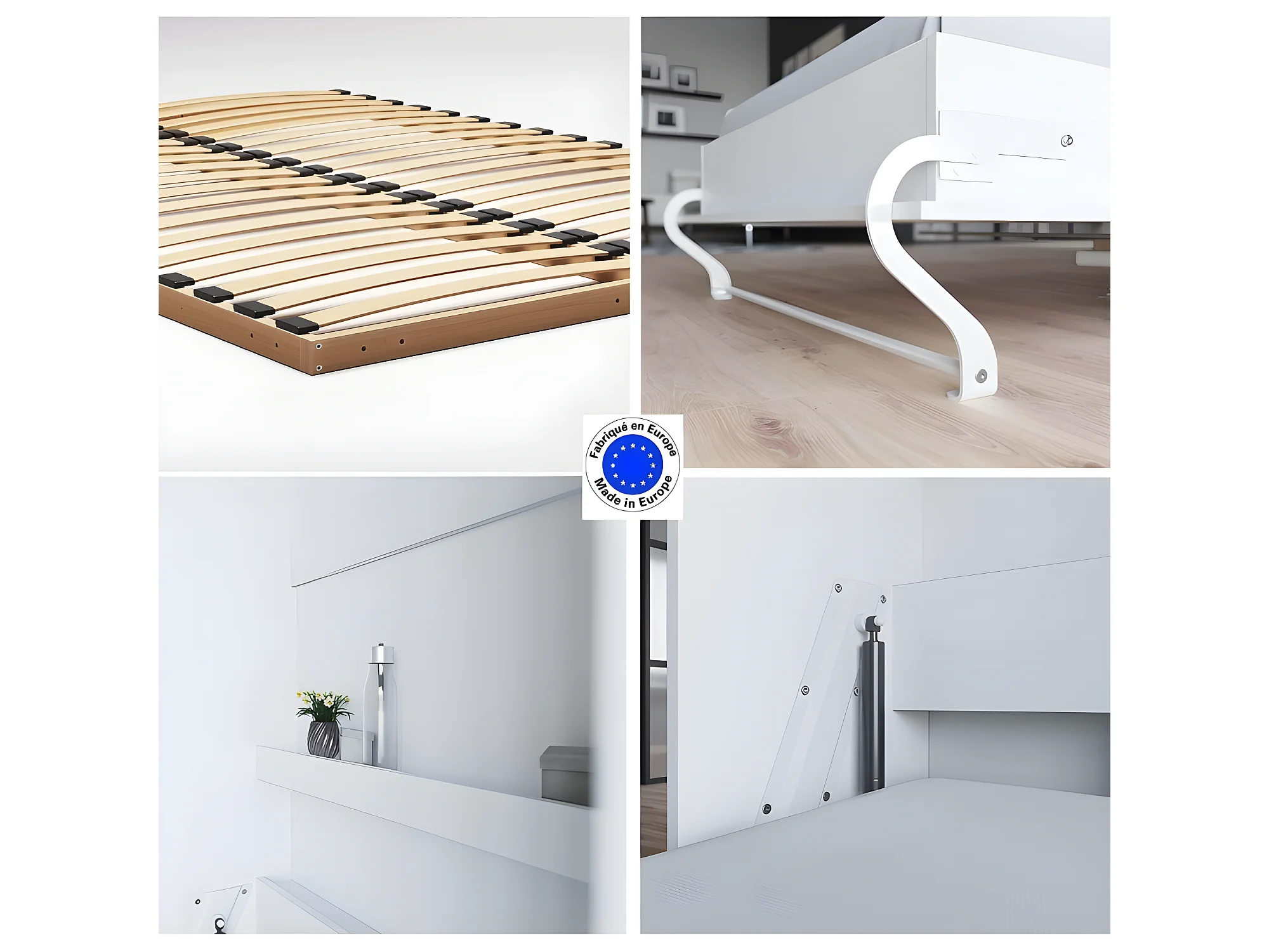 Lit escamotable +2 Placards Vertical 140x200+(80x2)cm Lit Rabattable Lit Mural Standard Blanc/Blanc brillant